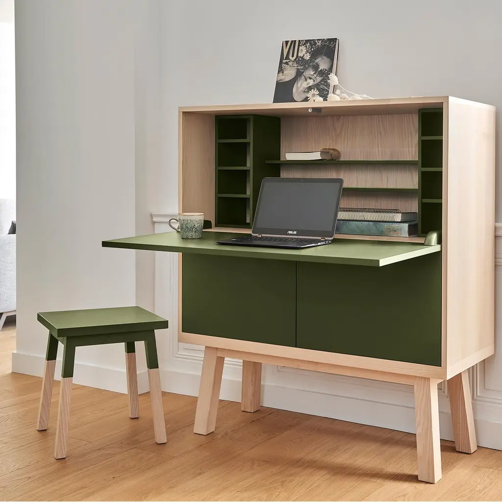 Green Lacquered Large French Secrétaire, Designed For A Durable Teleworking