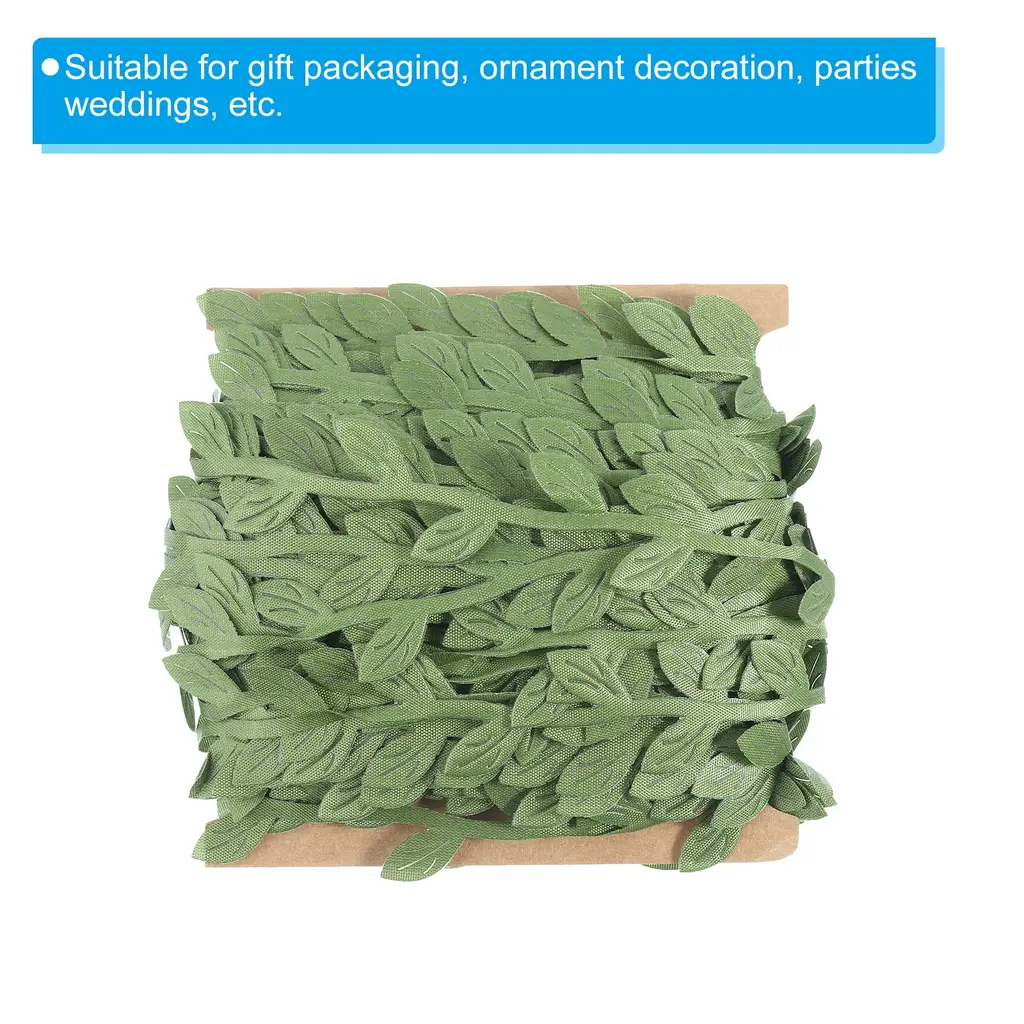 It is great for a wide range of craft projects, including floral arrangements, wreaths, gift wrapping, DIY decorations, scrapbooking. It provides endless creative possibilities. Suitable for birthdays, Halloween, Christmas, parties, bridal showers, and fall weddings. It provides endless creative possibilities.SpecificationColor: GreenMaterial: PolyesterSize: 20 Meters x 22mm / 787.4 x 0.9 inch(L*W)Packing List: 1 x Decorative Leaves RibbonAdvantageNatural and Realistic: This leaf ribbon features a natural and realistic design, with detailed leaves that resemble the beauty of fresh foliage, adding a touch of nature to your craft projects.Quality Material: Crafted from durable materials, this leaf ribbon is flexible and resistant to fraying or fading, ensuring long-lasting use and vibrant color retention.InstructionThe leaf plant ribbon is easy to cut and shape, allowing you to customize its length and create desired designs and arrangements. Its flexibility makes it effortless to incorporate into various crafts.NOTE: Depending on your project, you may need different widths or lengths. Determine the appropriate size to achieve the desired effect and ensure it will be sufficient for your needs.