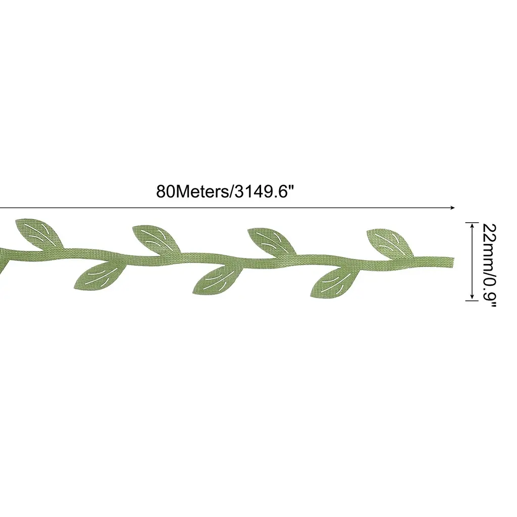 It is great for a wide range of craft projects, including floral arrangements, wreaths, gift wrapping, DIY decorations, scrapbooking. It provides endless creative possibilities. Suitable for birthdays, Halloween, Christmas, parties, bridal showers, and fall weddings. It provides endless creative possibilities.SpecificationColor: GreenMaterial: PolyesterSize: 77 Meters x 22mm / 3031.5 x 0.9 inch(L*W)Packing List: 1 x Decorative Leaves RibbonAdvantageNatural and Realistic: This leaf ribbon features a natural and realistic design, with detailed leaves that resemble the beauty of fresh foliage, adding a touch of nature to your craft projects.Quality Material: Crafted from durable materials, this leaf ribbon is flexible and resistant to fraying or fading, ensuring long-lasting use and vibrant color retention.InstructionThe leaf plant ribbon is easy to cut and shape, allowing you to customize its length and create desired designs and arrangements. Its flexibility makes it effortless to incorporate into various crafts.NOTE: Depending on your project, you may need different widths or lengths. Determine the appropriate size to achieve the desired effect and ensure it will be sufficient for your needs.