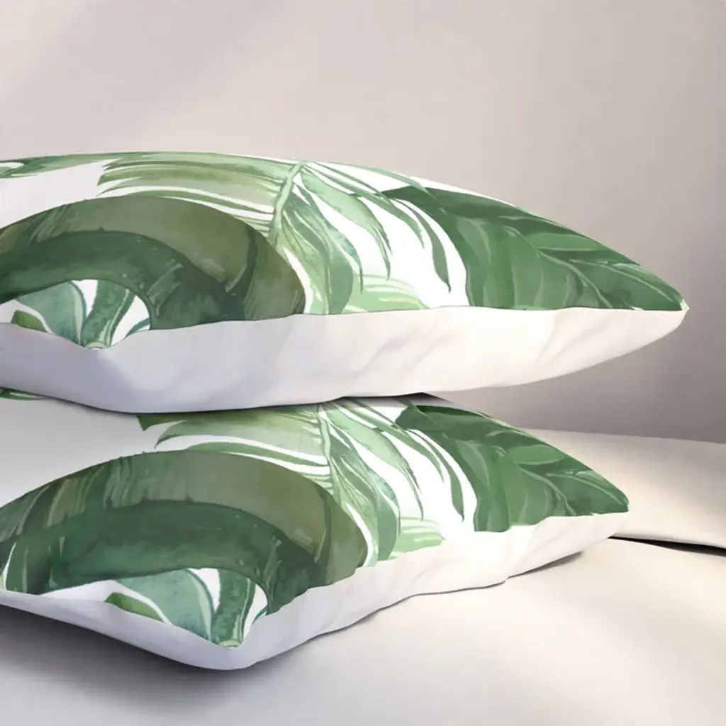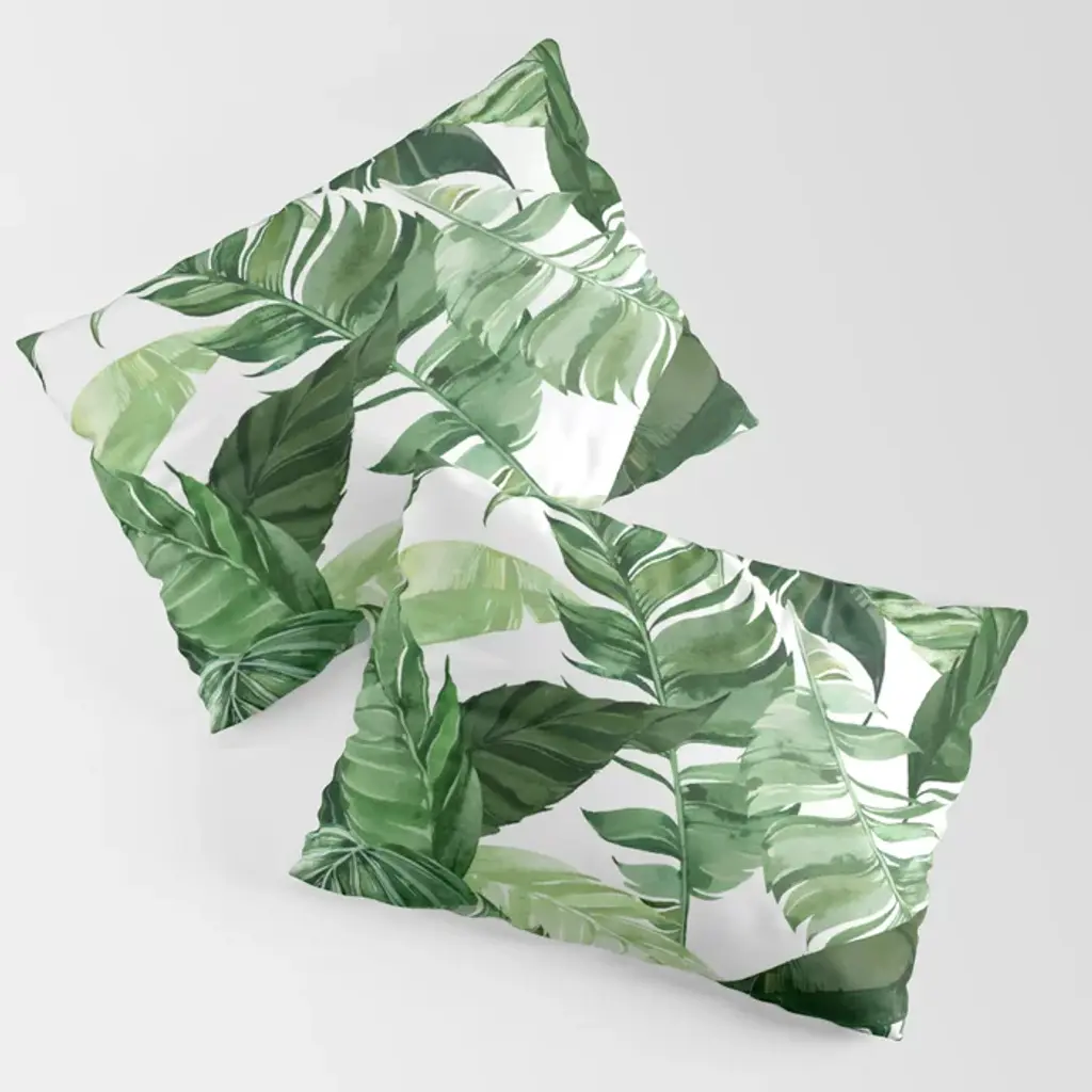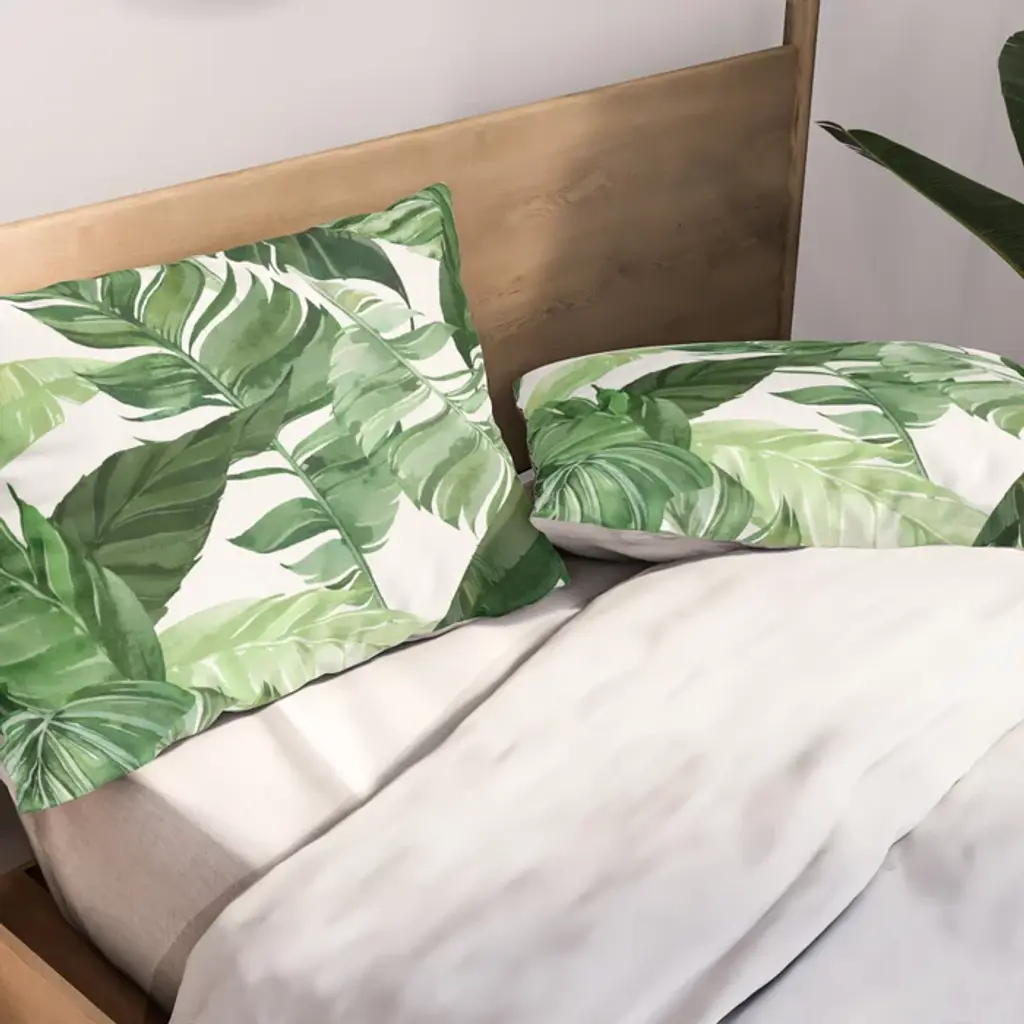 Green Leaf Watercolor Pattern Pillow Sham