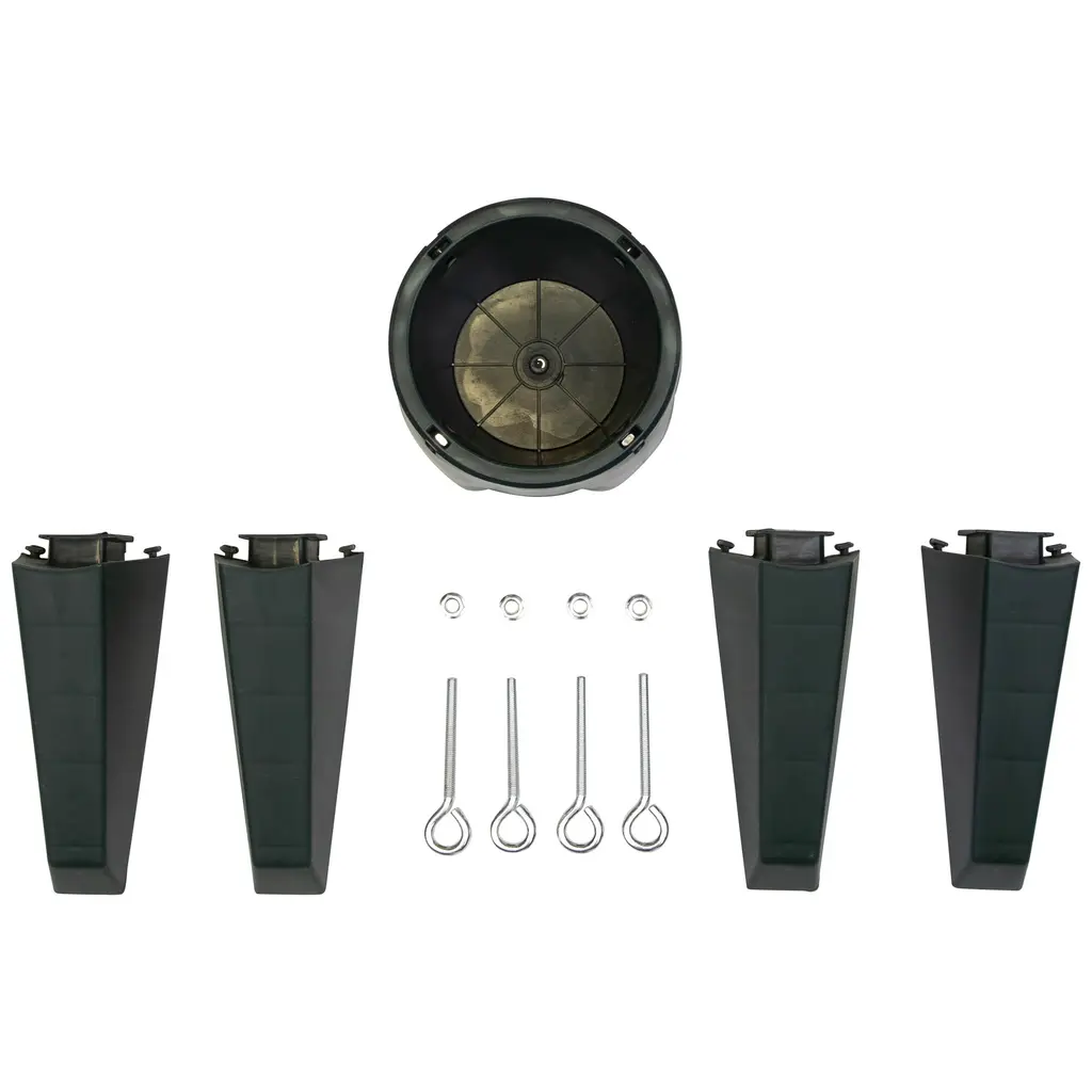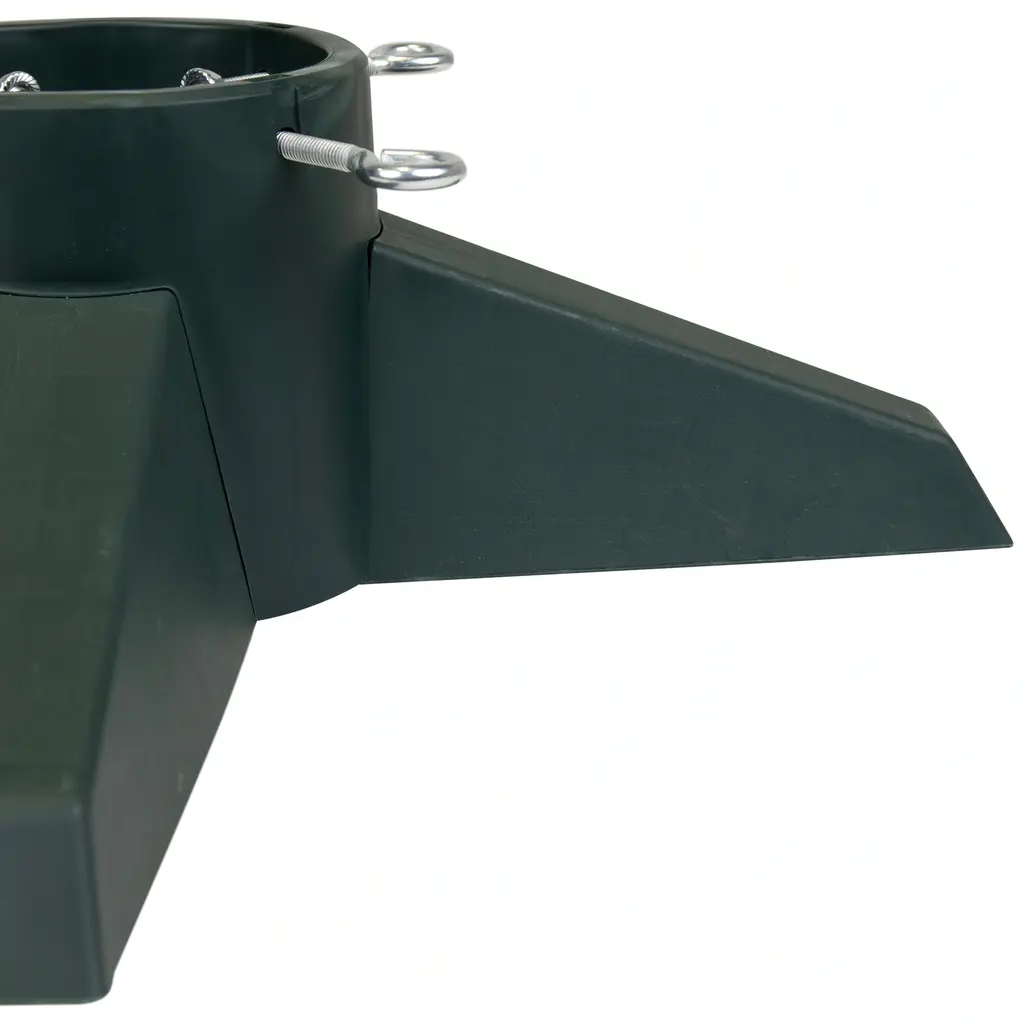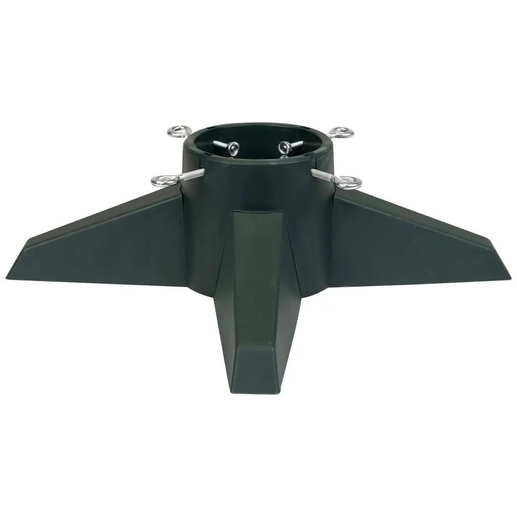 This sturdy tree stand is the perfect choice for your live Christmas tree. The tip proof design offers piece of mind. Equipped with a water catching lip at the base for any overflow. Made of heavy duty plastic it won't rust stain or scratch floors. Product Features: 4 adjusting screw bolts Tip proof design Built-in spill catching lip Material(s): plastic/metal screws