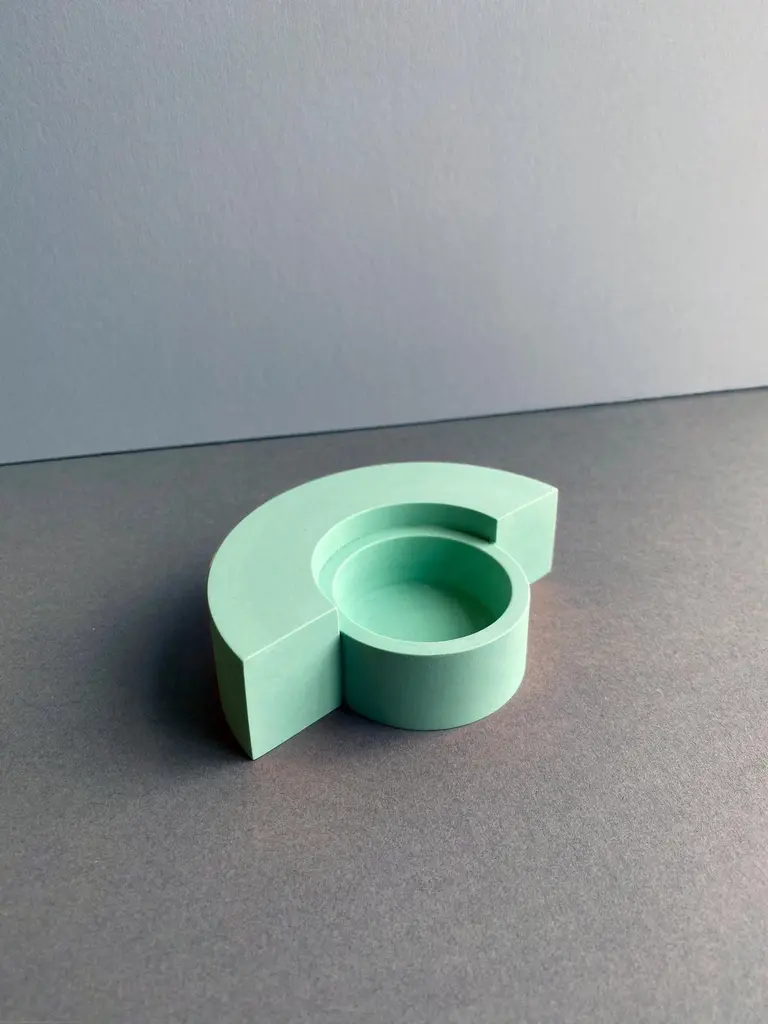 Green Mould project by Theodora AlfredsdottirUniqueMaterials: JesmoniteDimensions: 120 x 90 x 35 mmTheodora Alfredsdottir is a product design studio based in London. Theodora is an Icelandic product designer. She holds a bachelor’s degree in product design from the Iceland Academy of the Arts (2012) and a master’s degree in Design Products from the Royal College of Art in London (2015).Storytelling through objects; Theodora’s work revolves around the narrative an object can inhabit and exploring ways of objectifying that narrative. She's interested in the way an object can act as documentation of its manufacturing process; a record of what went on between the machine, tools, craftsman and material as well as it can communicate its origin and former life. In short, the object creates its own factual narrative. That often leads to the discovery of unexpected qualities as well as it gives the user a subtle opportunity to reconsider our material world and explore value in a different way.