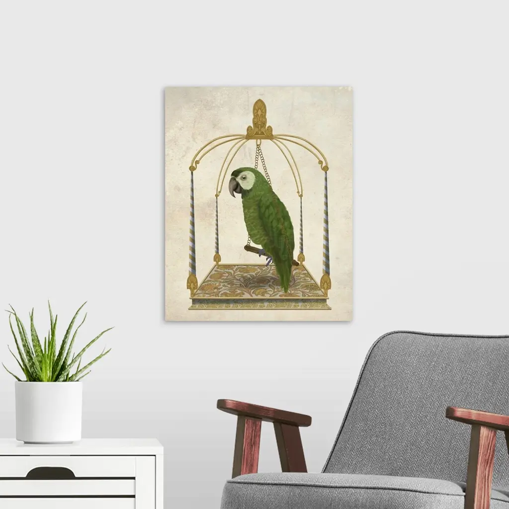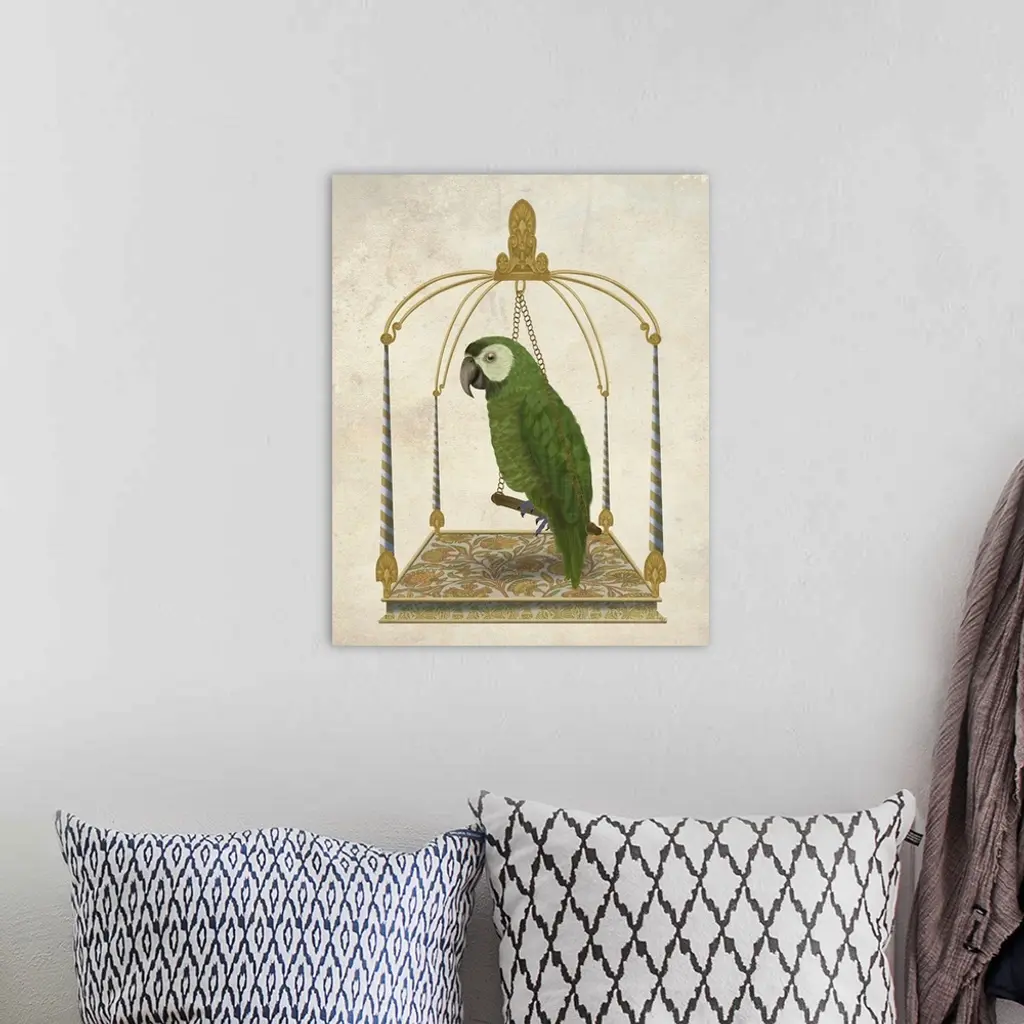 Green Parrot On Swing wall art for home and office decor. Discover canvas art prints, photos, mural, big canvas art and framed wall art in GreatBigCanvas.com's varied collections.
