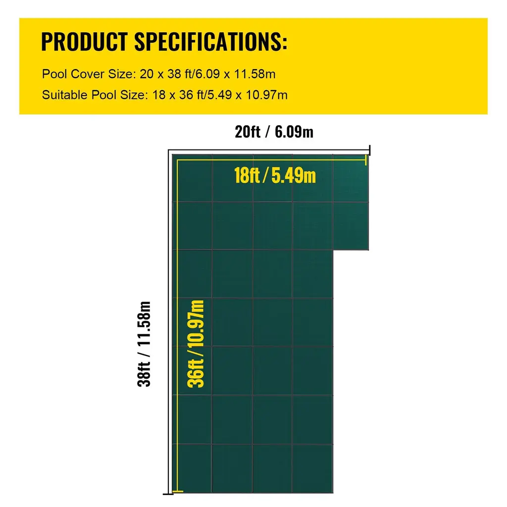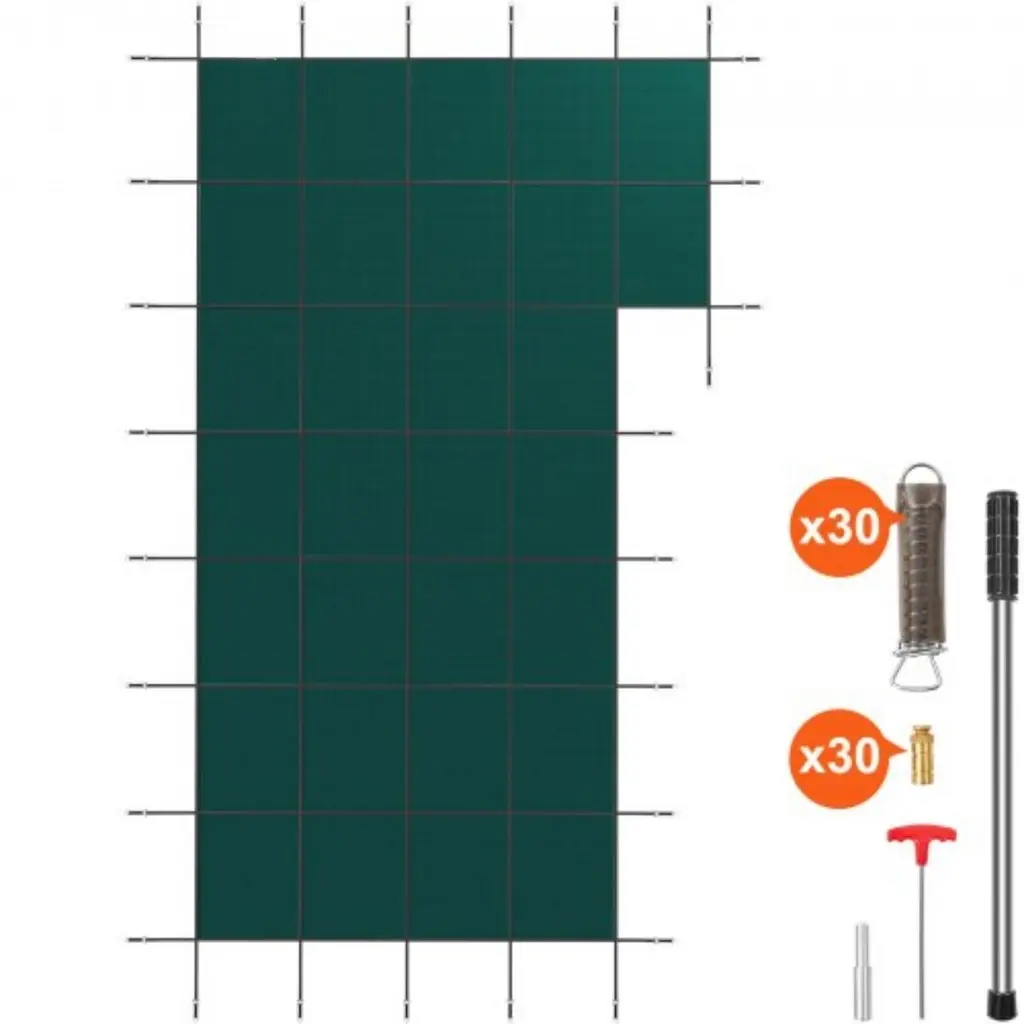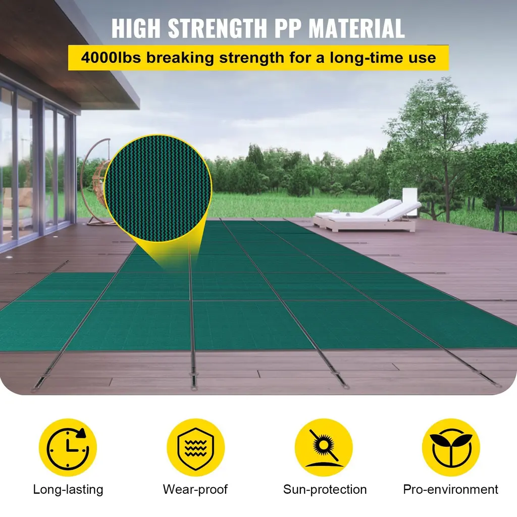 Green Polypropylene Tight Mesh Rectangular Winter Pool Cover With Triple Stitched - 18 X 36 Ft