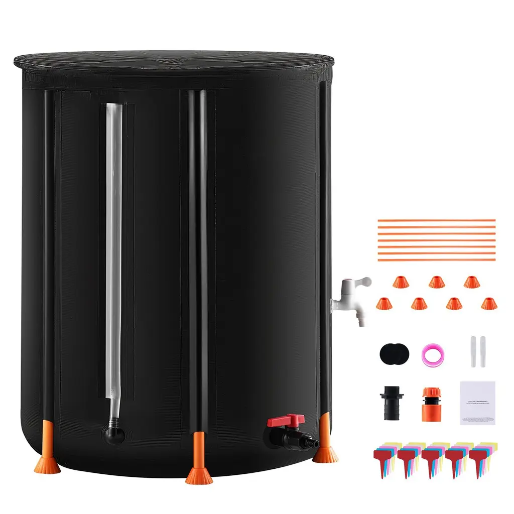 Green Pvc Rain Barrel With Mesh Top, Dual Outlets - 100 Gal