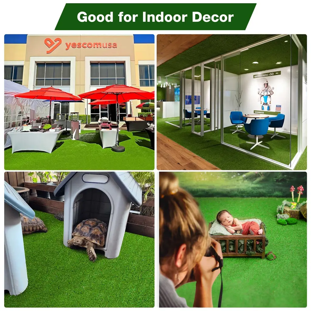 Specifications:Description:Transform your space with our Realistic Synthetic Grass Mat, designed to mimic the lush look and feel of natural grass. This 65x3-foot artificial turf features 3/8-inch blades and a dense 60,000 blades per square meter, offering an authentic appearance that remains vibrant year-round. Made from durable PP material, it is wear-resistant, UV-resistant, and fire-resistant, ensuring longevity in both indoor and outdoor settings. The rubber backing with drainage holes facilitates quick water drainage and prevents mildew buildup, making maintenance a breeze. Easy to trim for customized use, this versatile mat is perfect for pet areas, balconies, gardens, patios, rooftops, and more. Create a vibrant, low-maintenance oasis in any space with this high-performance synthetic grass mat.Key Features: