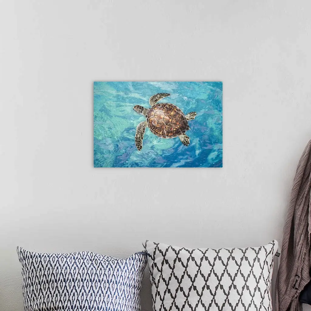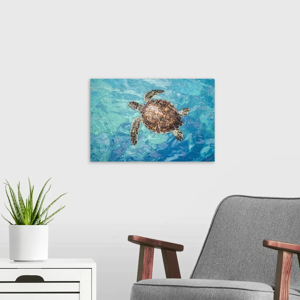 Green sea turtle (chelonia mydas), an endangered species, on the surface for a breath off west Maui, Hawaii, united states of America.