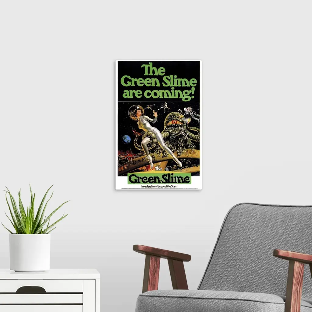 Danger and romance highlight the journey of a space ship assigned to intercept an oncoming asteroid. Little do the astronauts realize, but they have brought aboard the ship the malevolent alien creatures known as green slime (and we ain't talking jello here). Cheap, U.S./Japanese co-production will leave you feeling lousy in the morning. The title song is legendary among genre aficionados.
