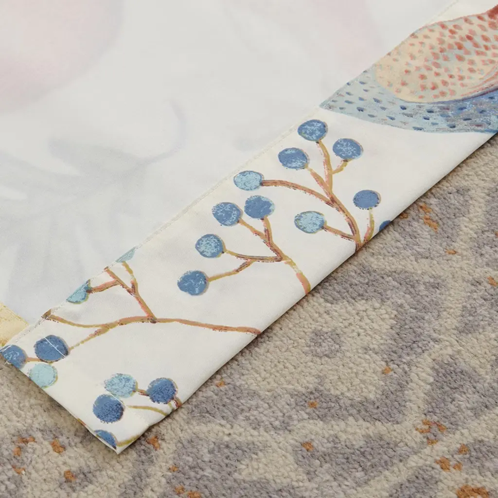Bring a menagerie of friendly forest creatures into your home. With owls, foxes, hedgehogs and songbirds, the Willow curtain panel set celebrates a gentle forest kingdom. This curtain panel set is lined with solid color fabric for increase privacy and sun protection. This 4-Piece set includes two panels and two tie backs. Dimensions: 84`` long x 42`` wide (x2). 100% polyester face, back (2 ply). Three-inch rod pocket fits most curtain rods for hanging. Machine wash. Imported.