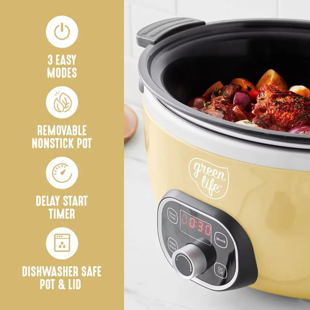 Greenlife Healthy 6Qt Slow Cooker Butter Yellow