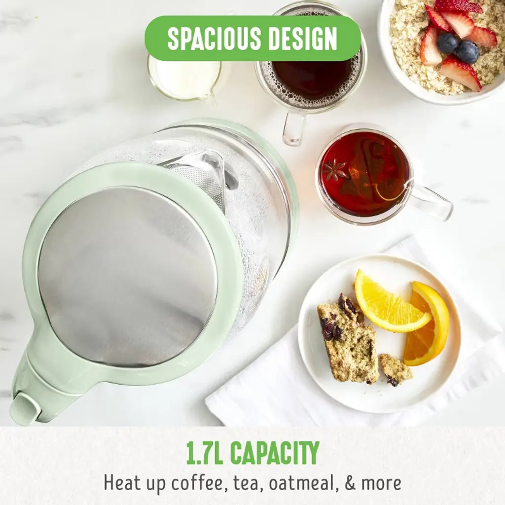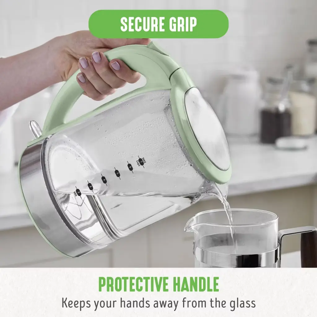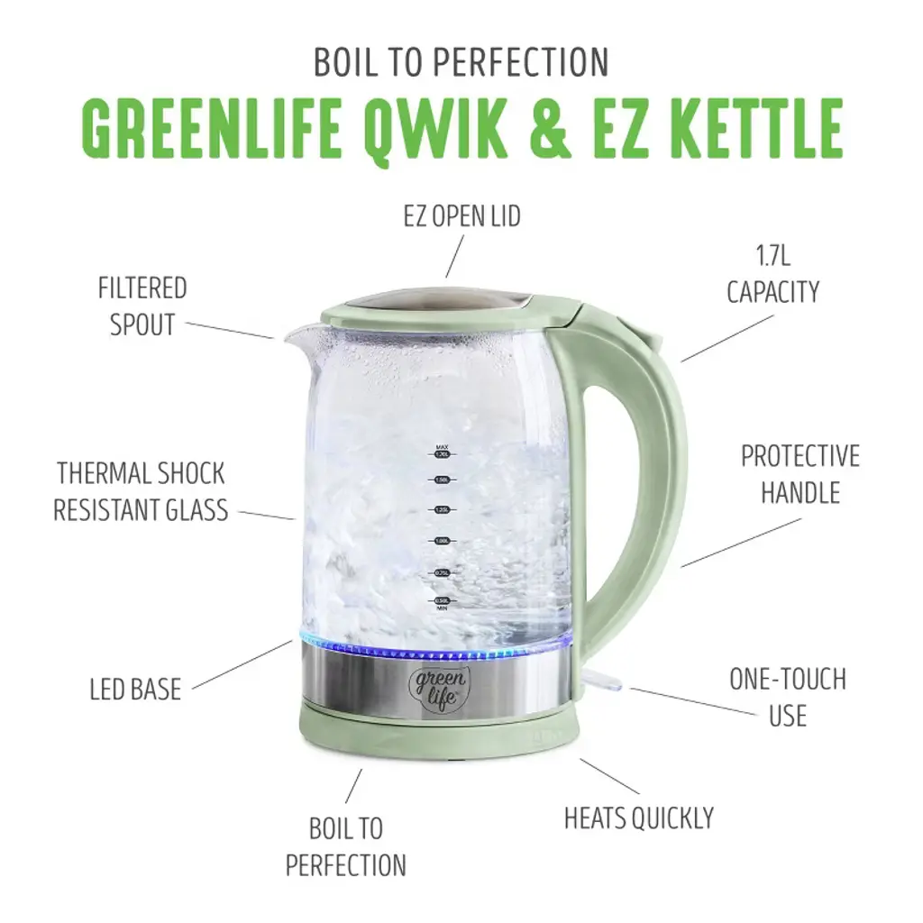 Greenlife Qwik And Ez Glass Kettle Green Sage