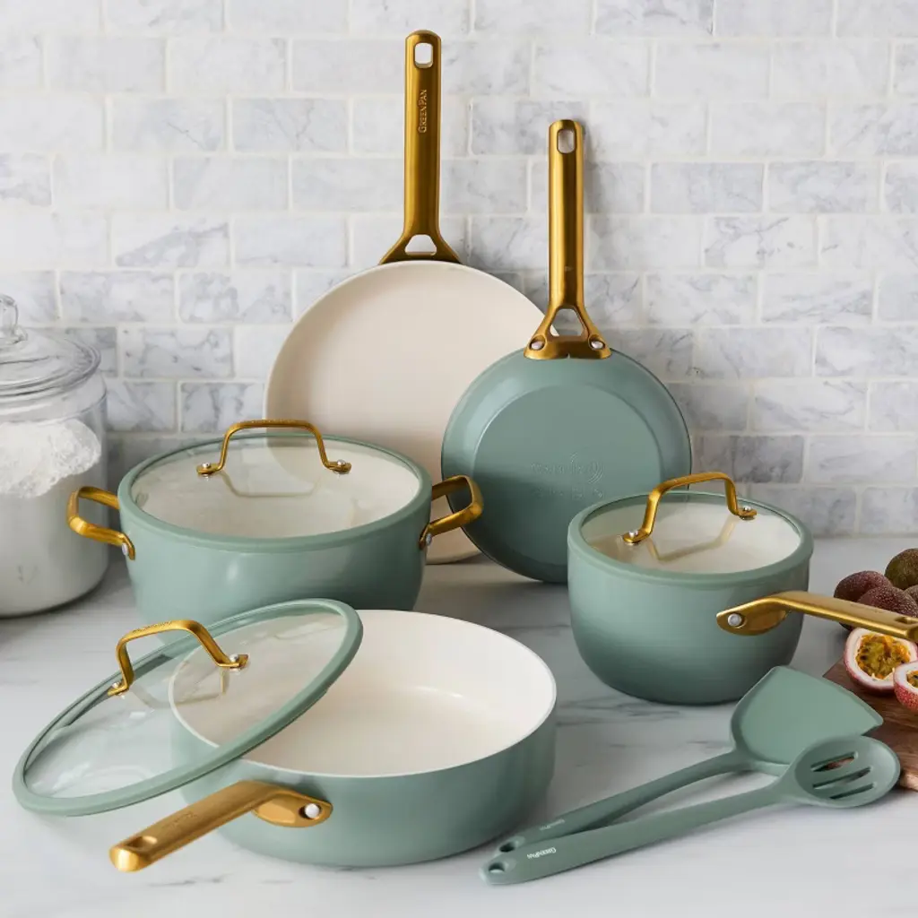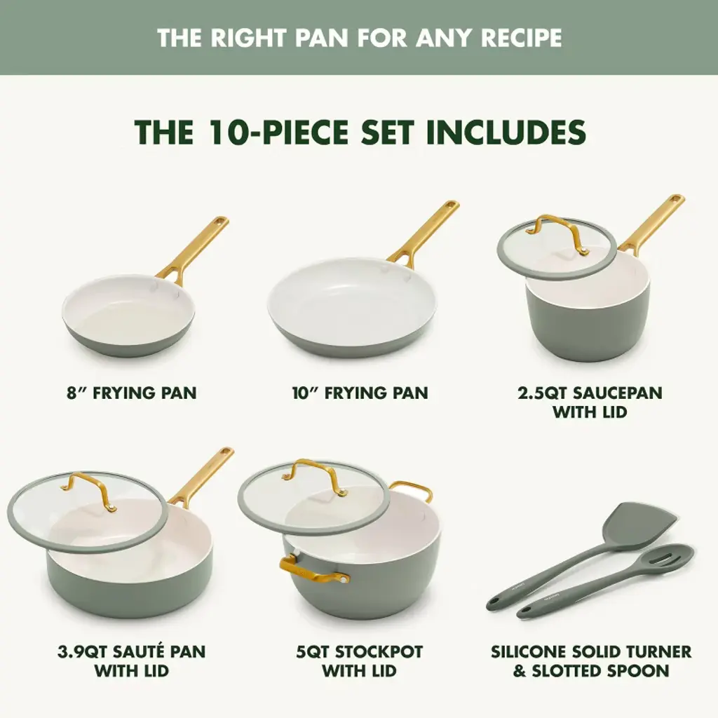 Greenpan 10pc Reserve Pro Ceramic Nonstick Cookware Set Moss