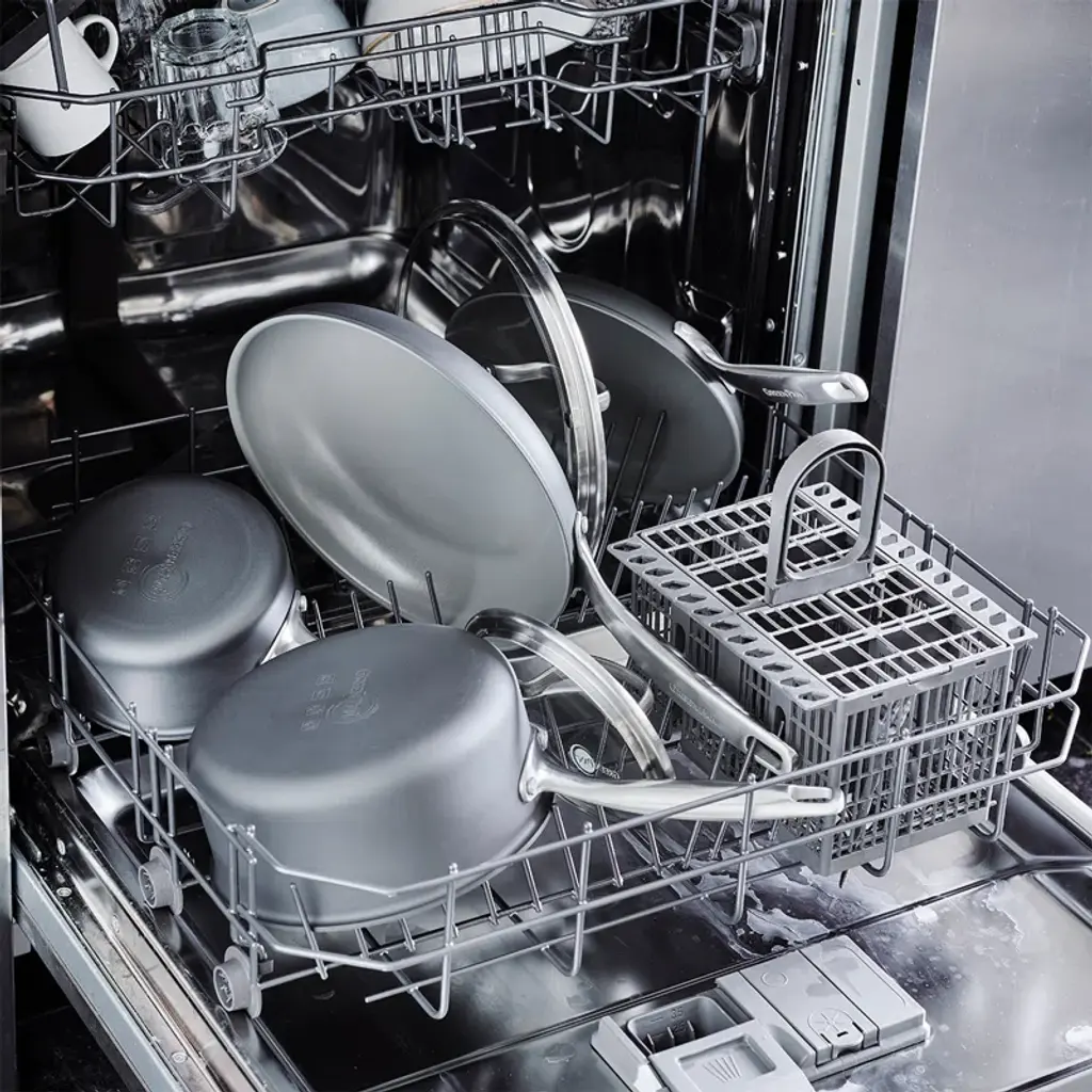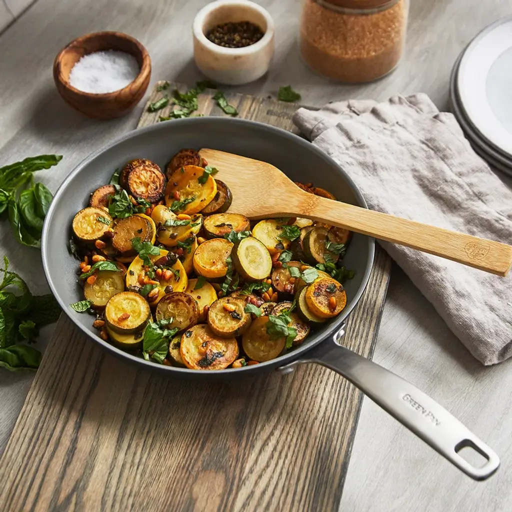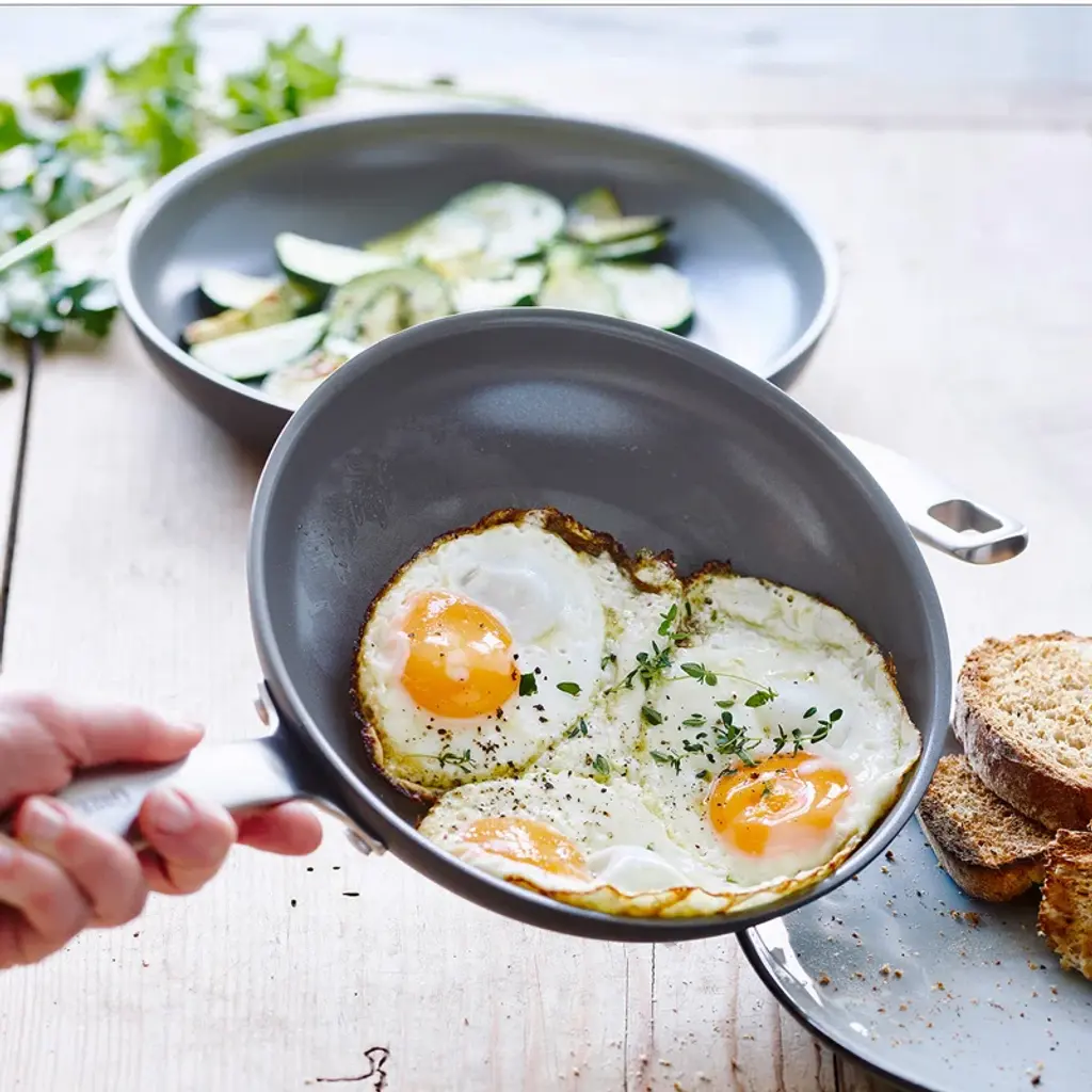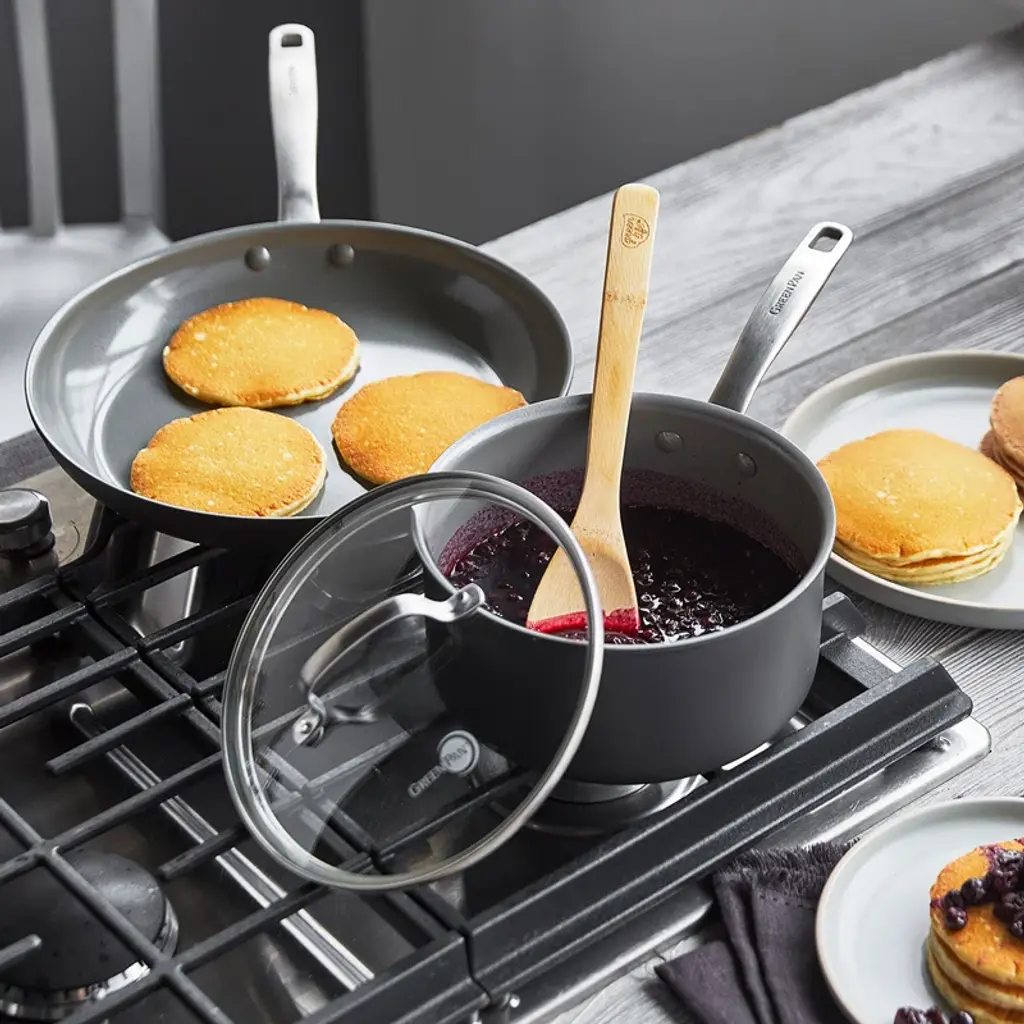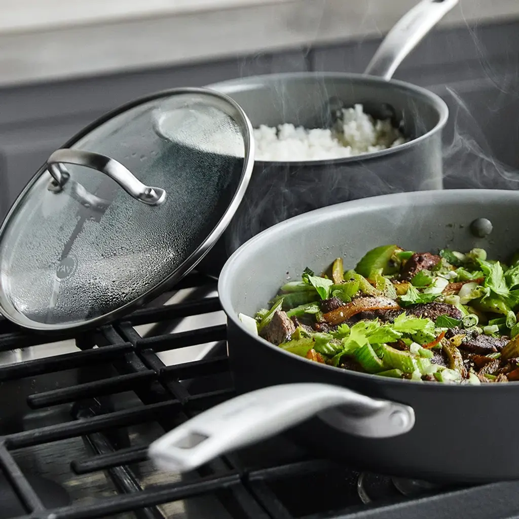Designed to be your everyday go-to, our Chatham collection features GreenPan’s signature healthy ceramic nonstick coating. For extra resilience, we reinforced it with diamonds so you can simmer, braise, and sear with ease (the best part: each and every piece is metal utensil safe). An ultra-tough hard-anodized aluminum body (heats evenly and cleans up easily every time) won’t warp or wobble no matter how many breakfasts, lunches, and dinners it turns out—and it’s free of PFAS, PFOA, lead, and cadmium so our cookware won’t release toxic fumes, even when overheated. Like an on-call dinner-making crew, this 10-piece set simmers soups, cooks fluffy grains, and turns out picture-perfect fish. Drip-free edges for easy pouring and oven-proof stainless steel handles for secure grips mean it’s primed for every meal you dream up.