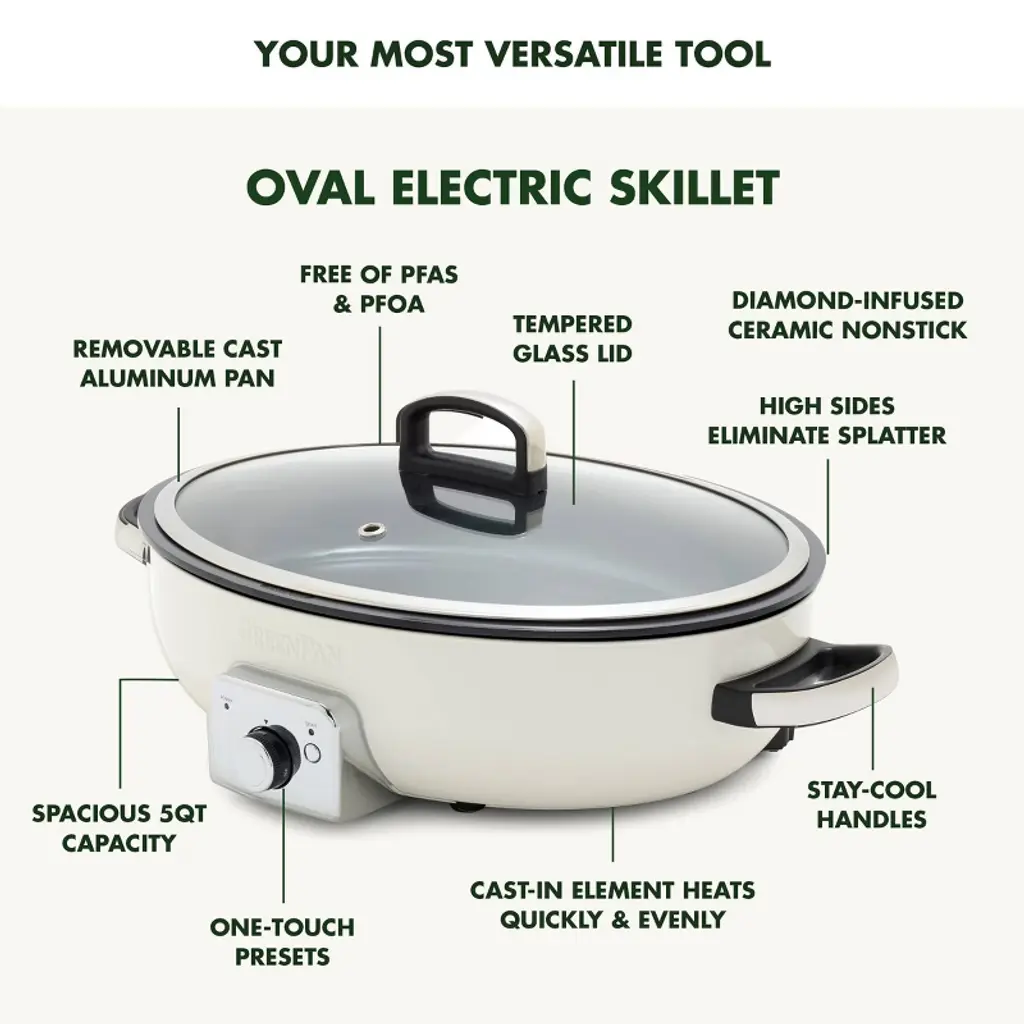 Greenpan Elite 5.5qt Oval Electric Skillet Cream