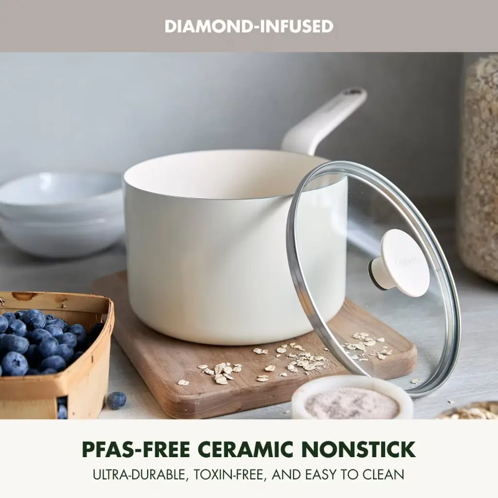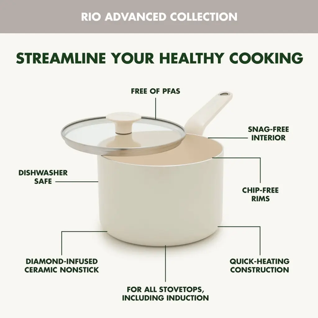 Greenpan Rio Advanced 3Qt Ceramic Nonstick Sauce Pan With Lid Cream