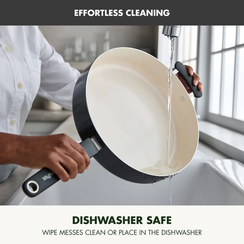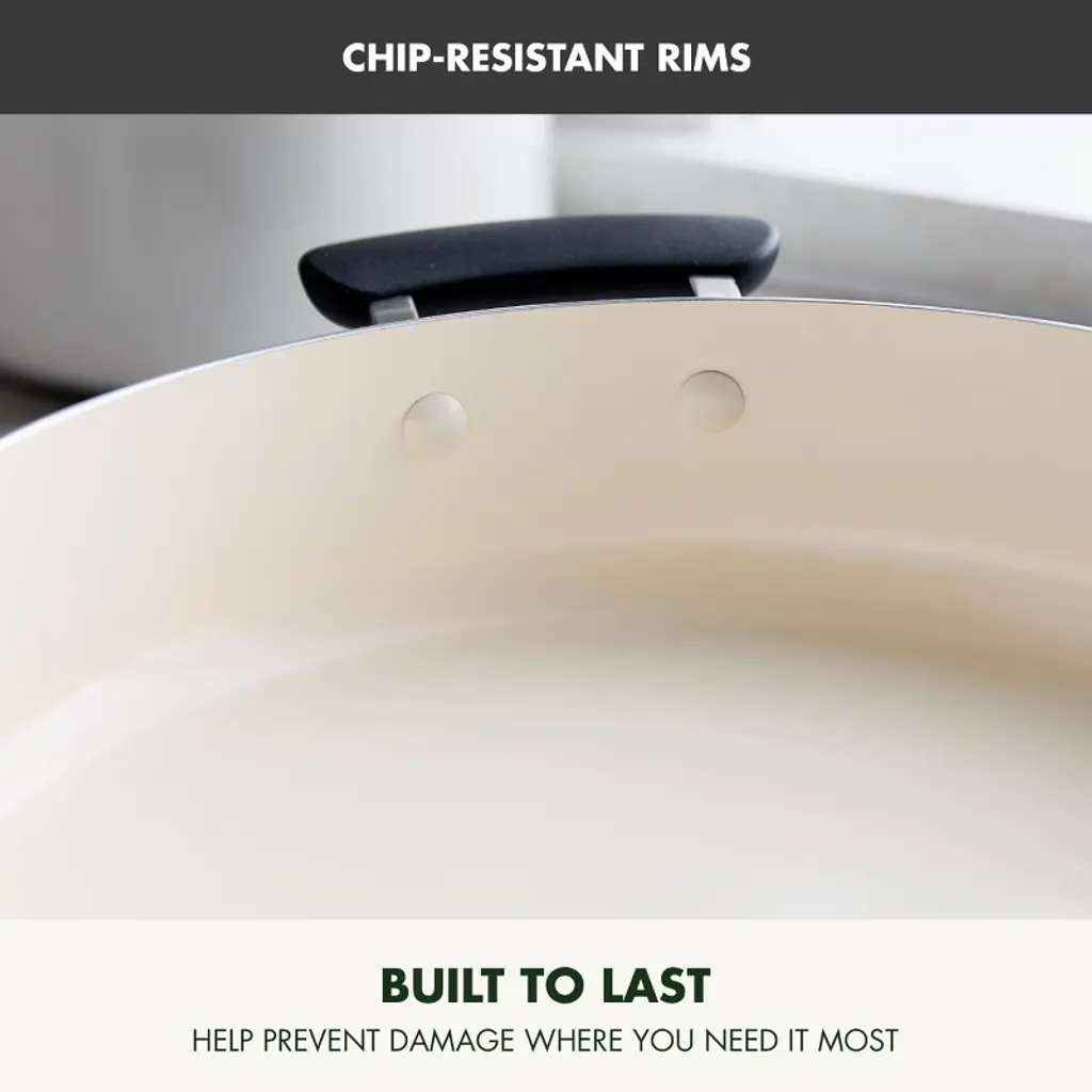 Take cooking to the next level with GreenPan’s Rio Advanced. Every detail is specially designed to make cooking easier. Featuring GreenPan’s signature diamond-infused ceramic nonstick, Rio Advanced delivers ultra-easy release, quick cleanup, and PFAS-free performance for worry-free cooking. The heat responsive bodies let you dial in your perfect temperature and the powerful induction-ready base ensures quick and even heat for incredible results on any stovetop. The smooth, rivetless interior eliminates food traps and wipes clean in seconds and the chip-resistant rims protect these pans at the edges. A sturdy, ergonomic handle provides a comfortable grip, while the durable glass lid locks in heat and flavor. Whether you're rinsing it clean or loading it in the dishwasher, Rio Advanced is built to perform day in, day out (and looks great doing it).