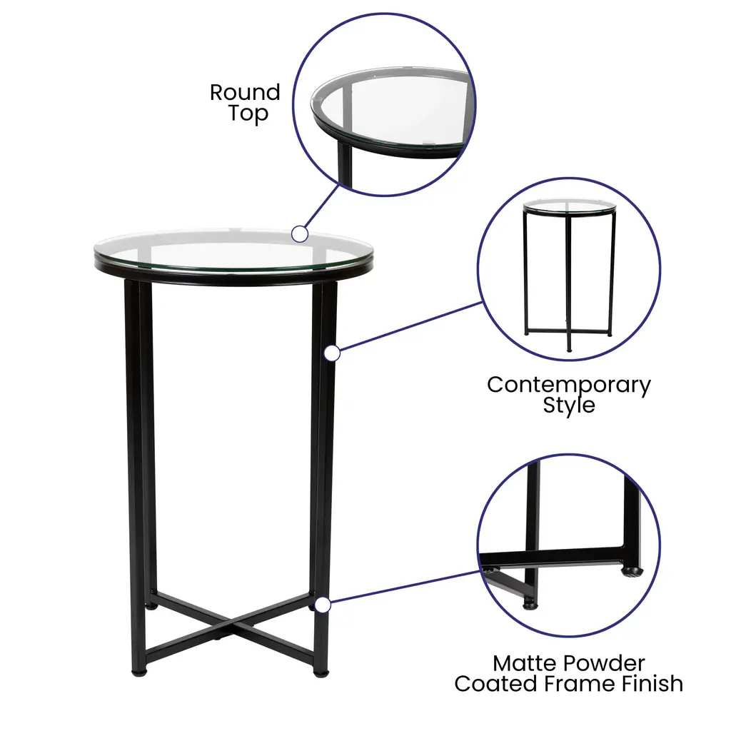 Greenwich Collection Coffee And End Table Set - Glass Top With Metal Frame - 3 Piece Occasional Table Set