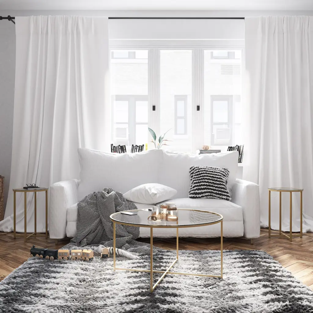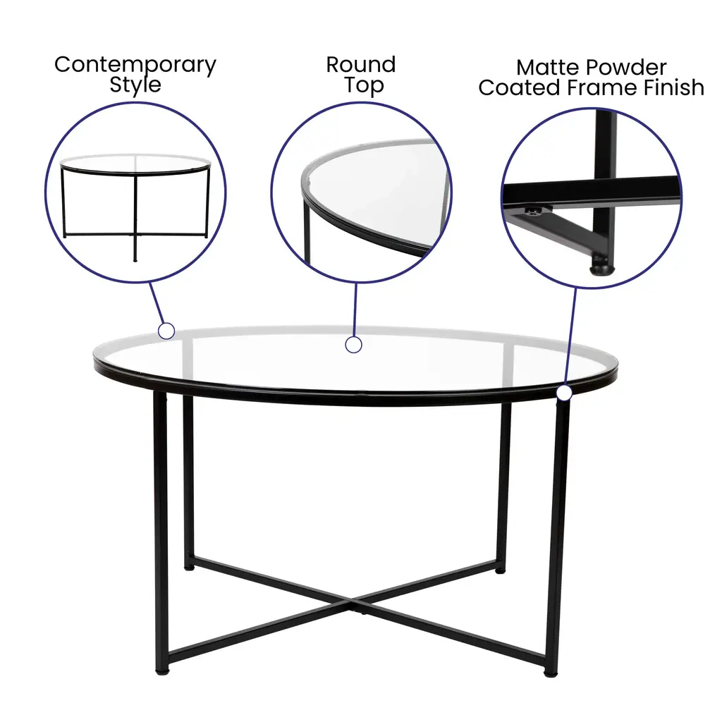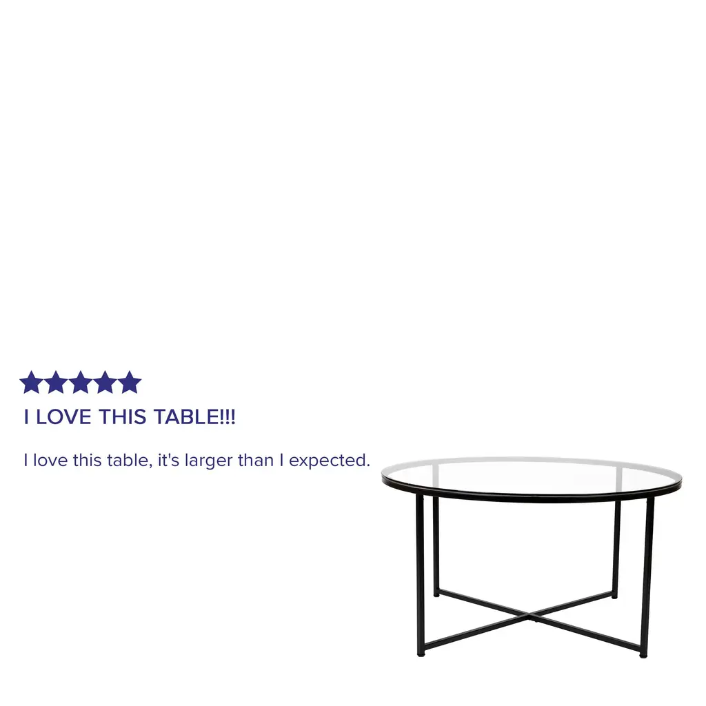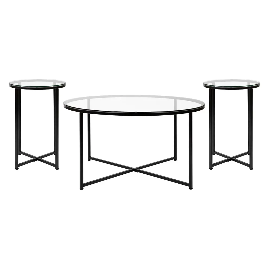 Add a little glitz to your smaller living space with this 3 piece coffee table set, which offers a design that can mix in any room. The circular shape adds a refreshing design. The top provides a dramatic appearance. Slim frames and X-shaped base stretchers are bathed in a glam finish. Keep this set looking great with a water-based cleaner. The round coffee table and its two matching end tables are each topped with tempered glass that lends a spacious feel to your living room.