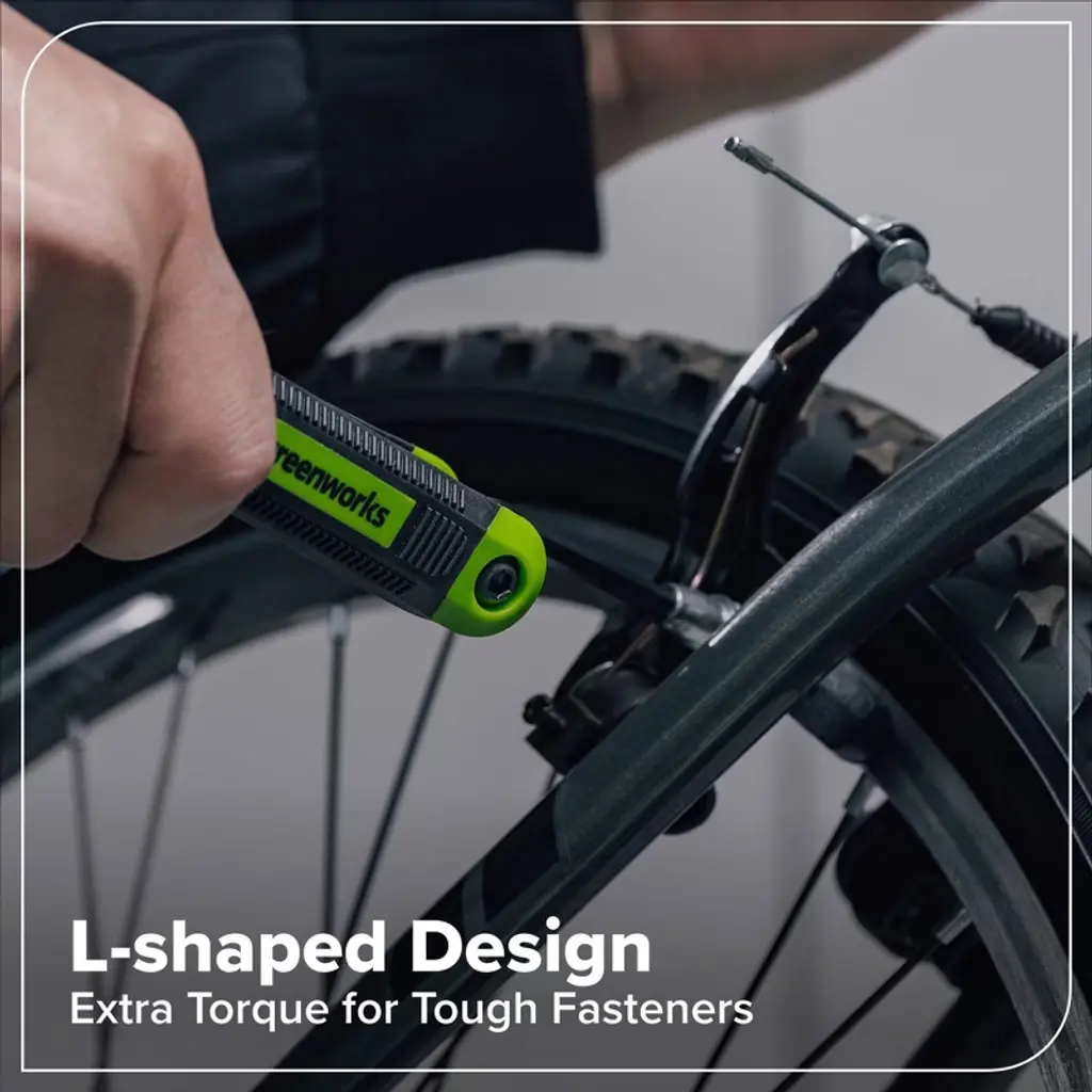 From assembling furniture to tightening bike bolts, the Greenworks SAE & metric hex wrench set is a must-have for every homeowner. With both standard (SAE) and metric sizes, this set ensures you’ll always have the perfect fit for any job around the house, garage, or workshop. No more struggling with the wrong size tool—this versatile, all-in-one hex wrench set makes home maintenance simple and hassle-free.