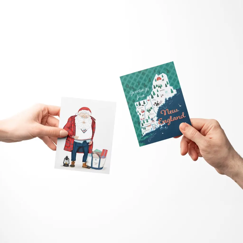 Greetings From New England, New England Boot, Preppy Santa Winter/holiday/christmas Greeting Card Pack Sets (3 Ct, Assorted) By Ramus & Co
