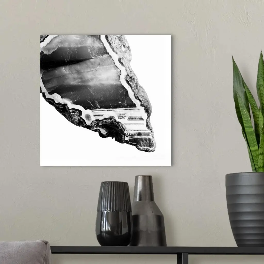 Thin slice of polished agate, showing the natural patterns and colors of the mineral.