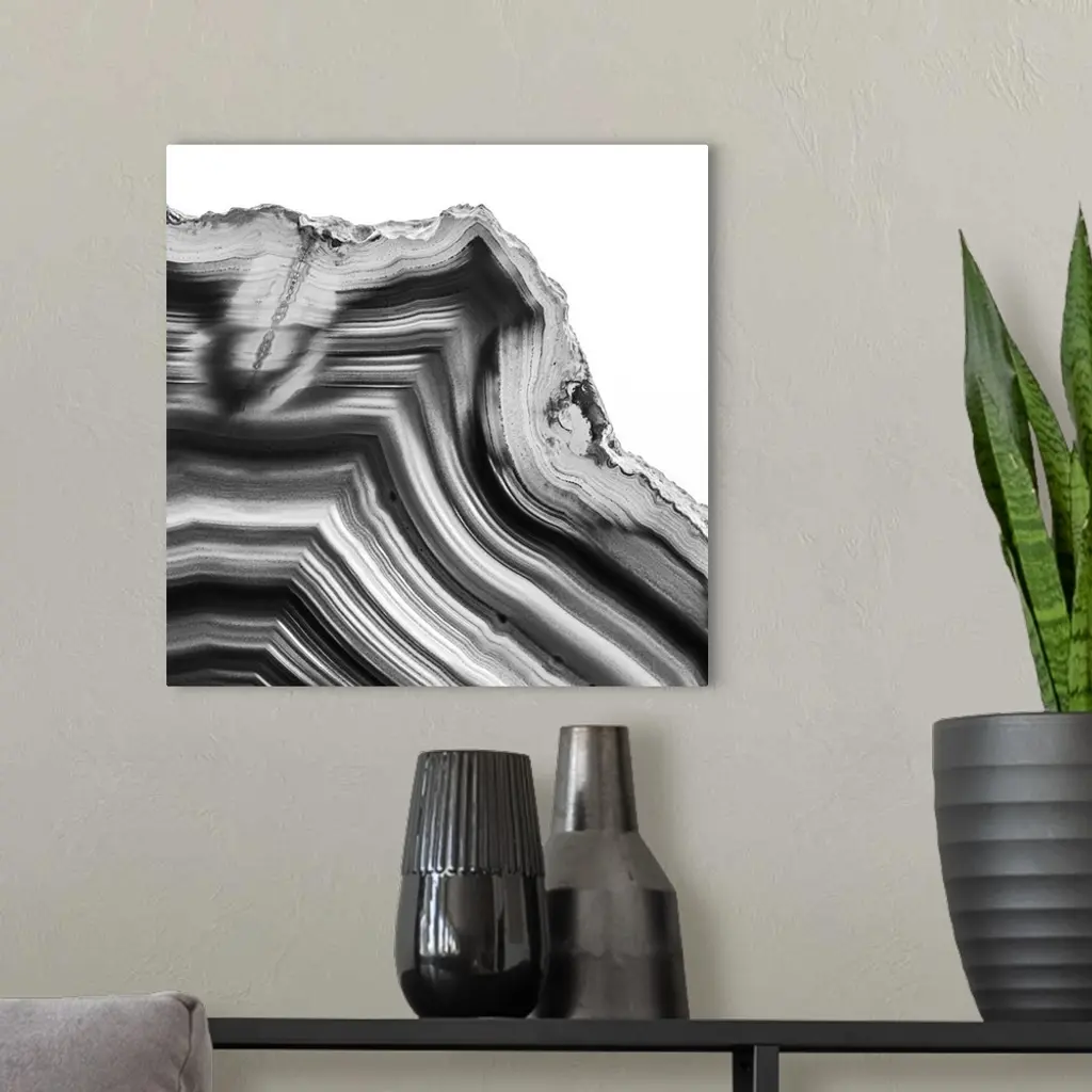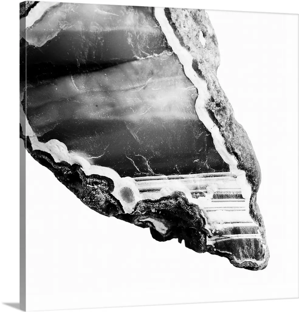 Thin slice of polished agate, showing the natural patterns and colors of the mineral.