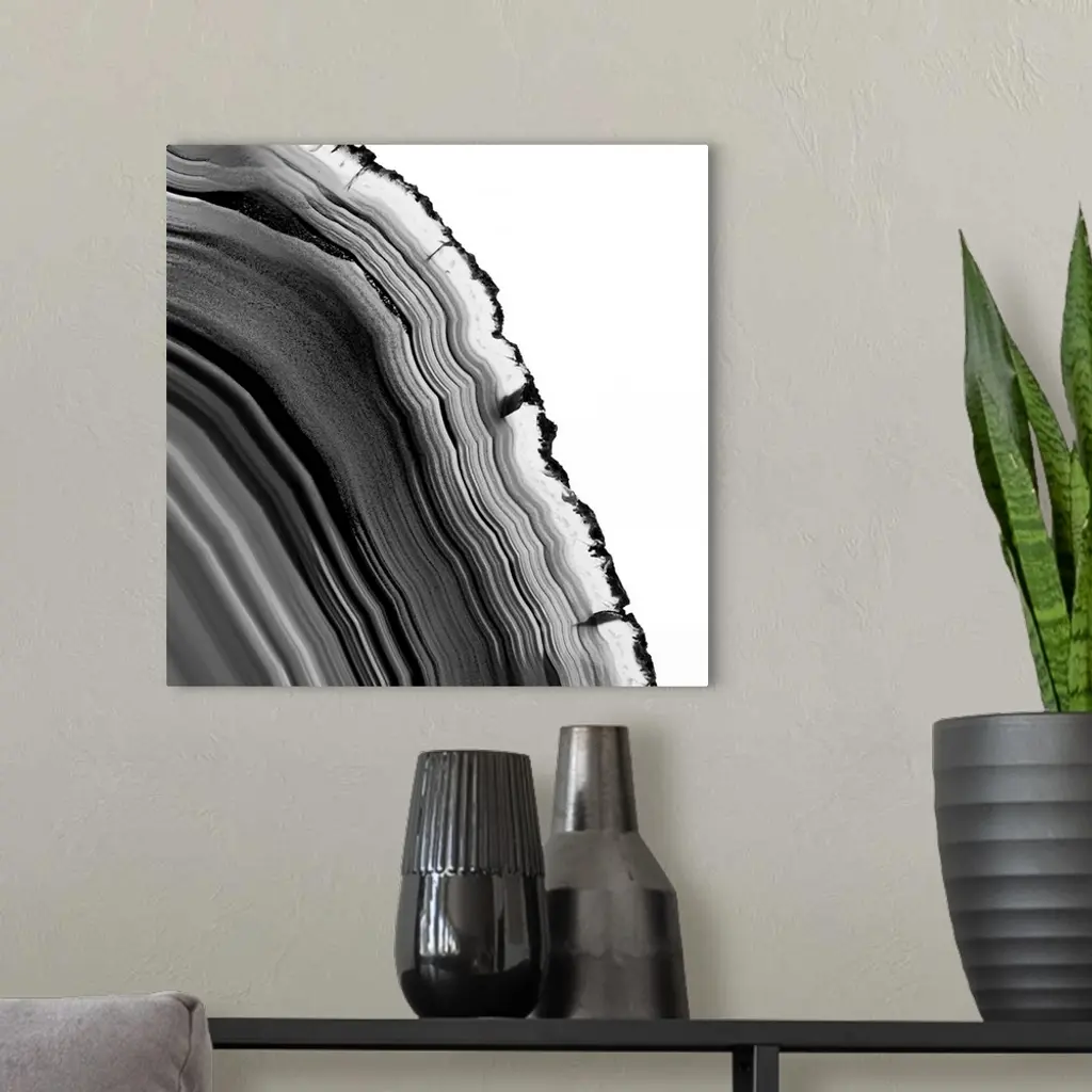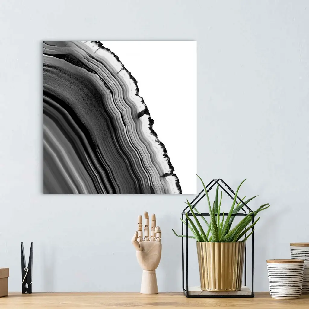Thin slice of polished agate, showing the natural patterns and colors of the mineral.