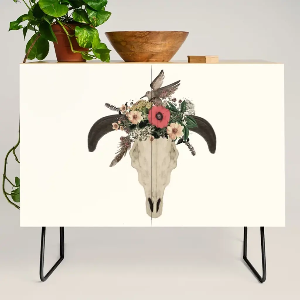 35.5" x 17.5" x 30" (H) including legsSteel legs available in gold or blackInterior shelf is adjustableWipe clean with damp clothAssembly requiredEvery order is made just for youTips for Assembling Your CredenzaHere’s what you’ll need beforehand (not included with your purchase): a Phillips head screwdriver and a partner. A ratchet and 7/16" socket is helpful but not required since we include a wrench.Read the instructions. We include a detailed, step-by-step guide in your box. Make sure to follow the instructions so your credenza looks perfect.SHIPPING: Items are made to order and typically ship within 3-4 business days. Click here for more information about delivery options.Furniture sales are final. Click here for more information on returns.