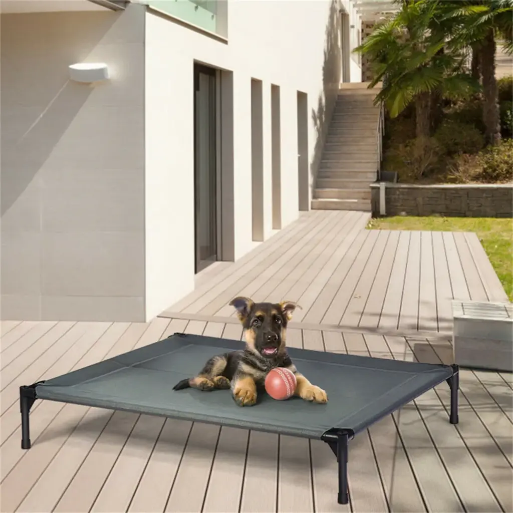 Specifications:Description:This elevated pet bed offers an ideal solution for keeping pets cool and comfortable, featuring a breathable mesh fabric that promotes airflow. The raised design keeps pets off the hard, wet ground, while the waterproof surface ensures easy cleaning and maintenance. The built-in sunscreen canopy provides ample shade, perfect for hot summer days, offering your pet a cool, relaxing space. Its lightweight construction makes it easy to transport and assemble, while the strong metal frame with four anti-skid feet ensures stability and high-bearing capacity. This versatile pet bed provides a comfortable place for pets to sleep, rest, and play.Key Features: