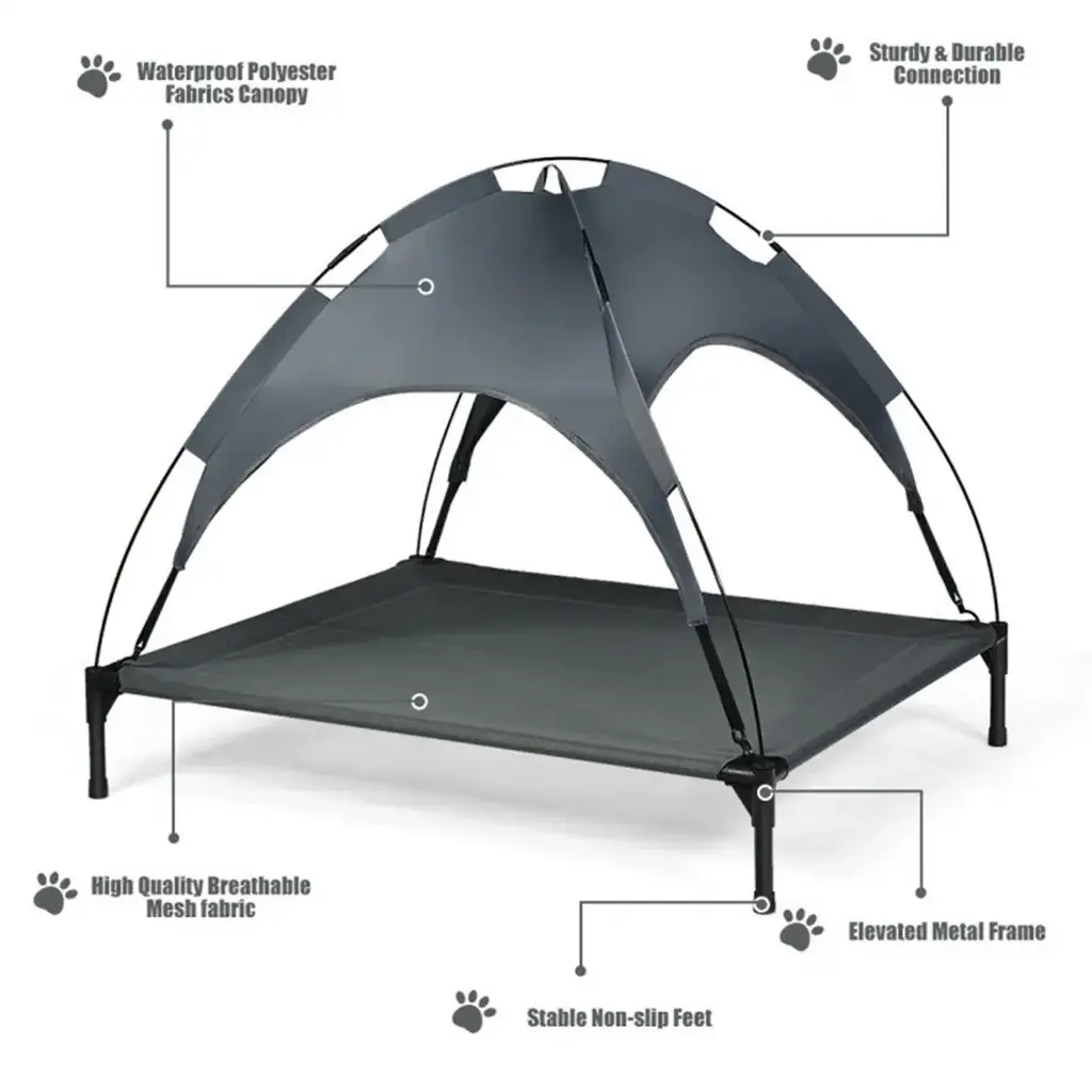 Grey Dog Cot With Uv Protection Canopy Shade For Large Dogs - 41.5" X 34.5" X 35"(l X W X H) - Grey