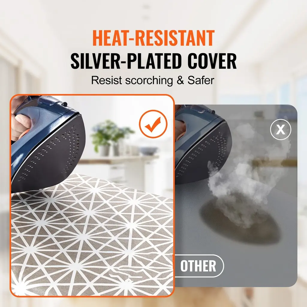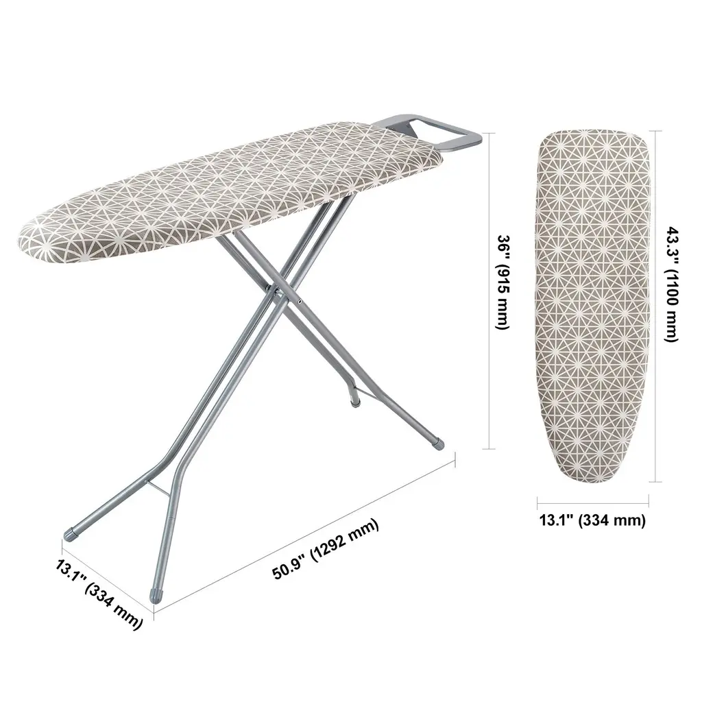 Grey Foldable And Height Adjustable 4 Layers Ironing Surface Board With Heat Resistant Cover - 50.9x13.1x36 In - Grey