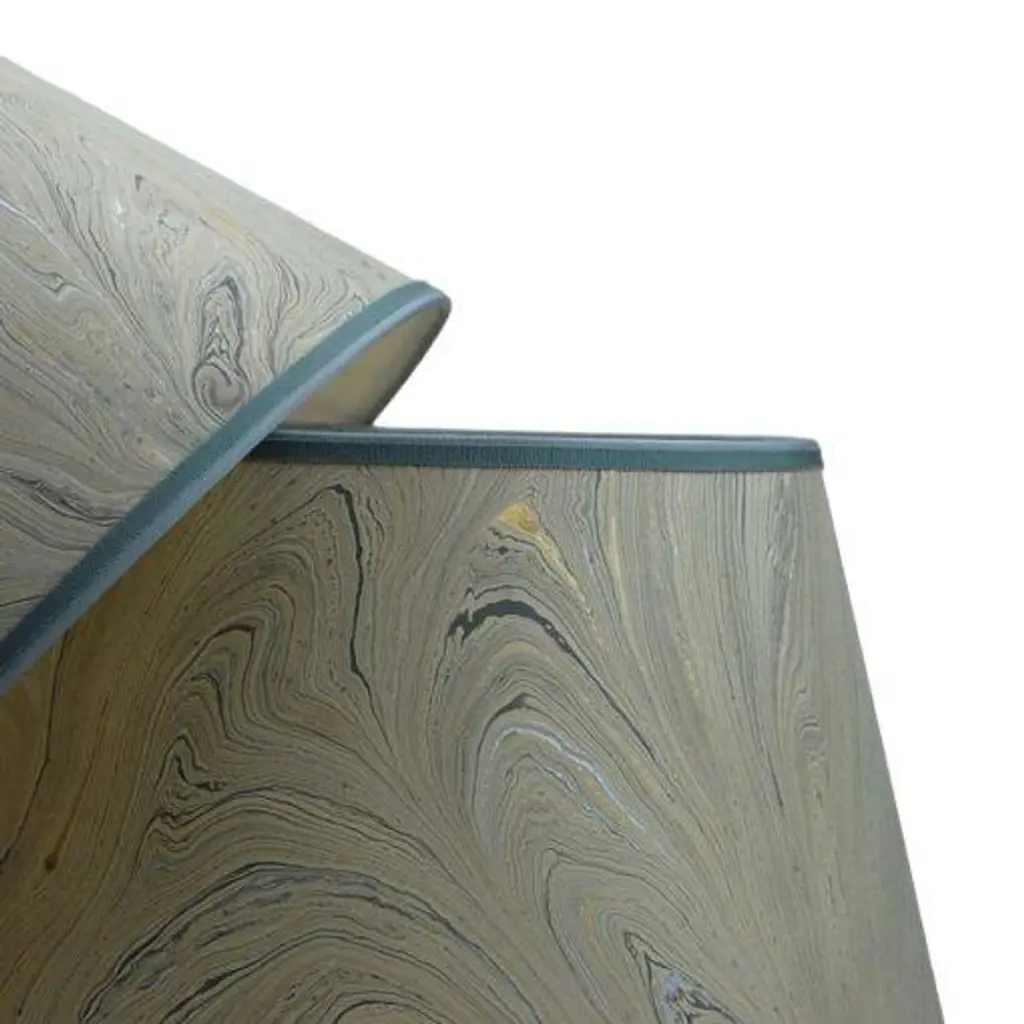 Marbled paper with a luxe grey, gold and silver pattern. Trimmed with two color of grossgrain. Available in 3 sizes: 8” x 12” x 8.75” 9” x 16” x 11” 12” x 18” x 12” Pictured in 12″ x 18″ 12″ Please note that larged sizes use multiple sheets of paper. There are extra seems in the back of the shades. All shades are made to order, by hand and are not returnable Please be sure to double check sizing before ordering. Shades sold individually.
