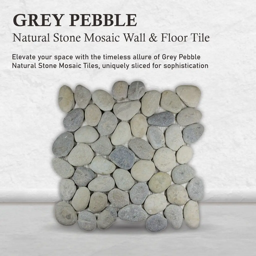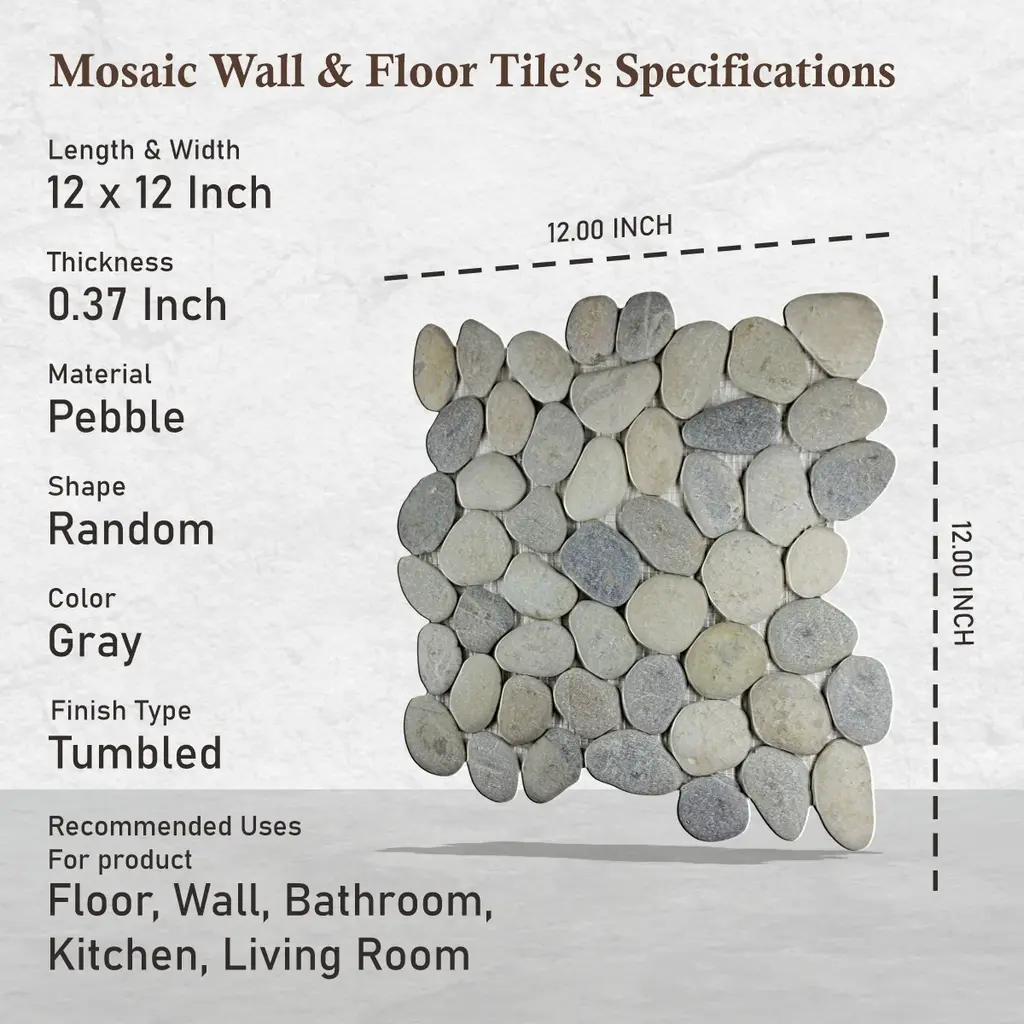 Grey Pebble Mosaic Tumbled Stone Backsplash Tiles For Kitchen Walls, Shower And Bathroom Floors 12" X 12" (5 Sqft Per Case) - Case (5 Tiles)
