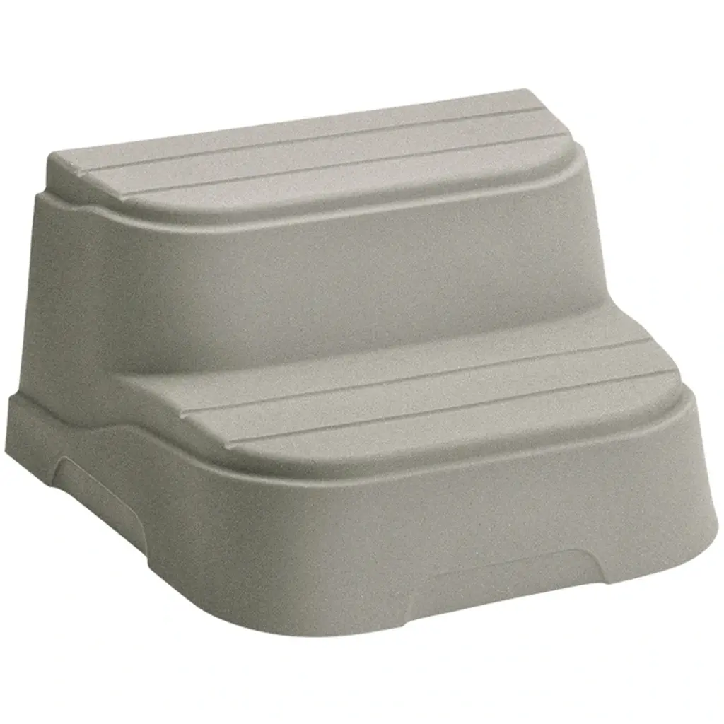 Enhance the spa experience for you and your guests with the convenience of steps. The Lifesmart Spa step goes with any rectangle/square or round/oval hot tub. The top step of the product can be easily flipped around to fit a rectangle/square or round/oval hot tub. The step features a 2-step design for safe and easy entry. • Grey steps that match any grey color hot tub • Interchangeable top step design made to fit any square or round hot tub • 2-step design • Lightweight and portableThis item includes curbside delivery only. Placement beyond the curb is not included.