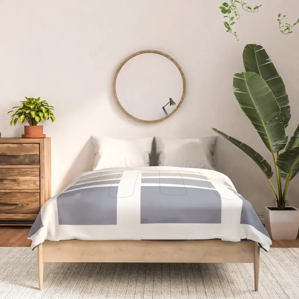 Grey Taupe Watercolor Gouache Geometric Square Matrix Pattern Comforter