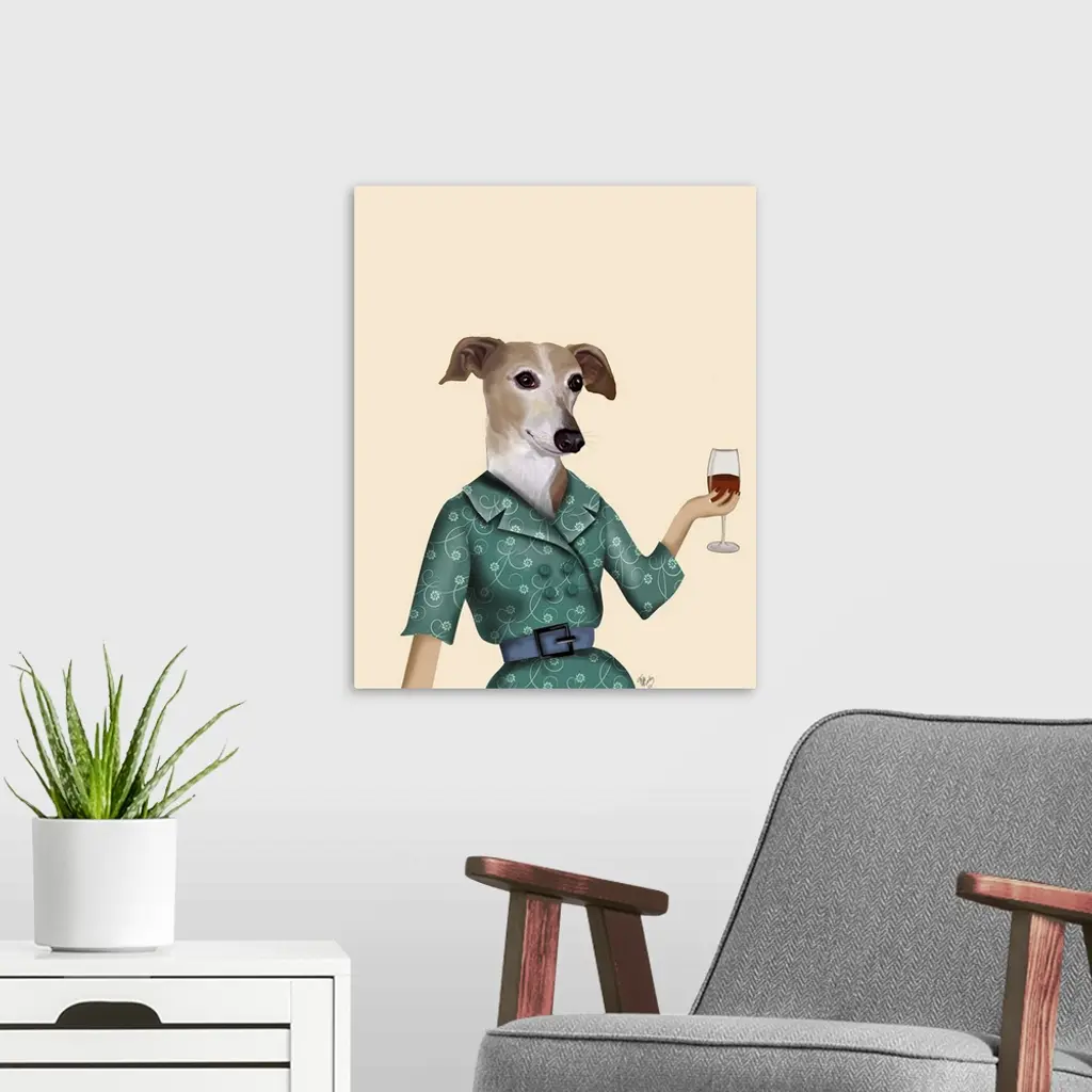 Greyhound Wine Snob wall art for home and office decor. Discover canvas art prints, photos, mural, big canvas art and framed wall art in GreatBigCanvas.com's varied collections.