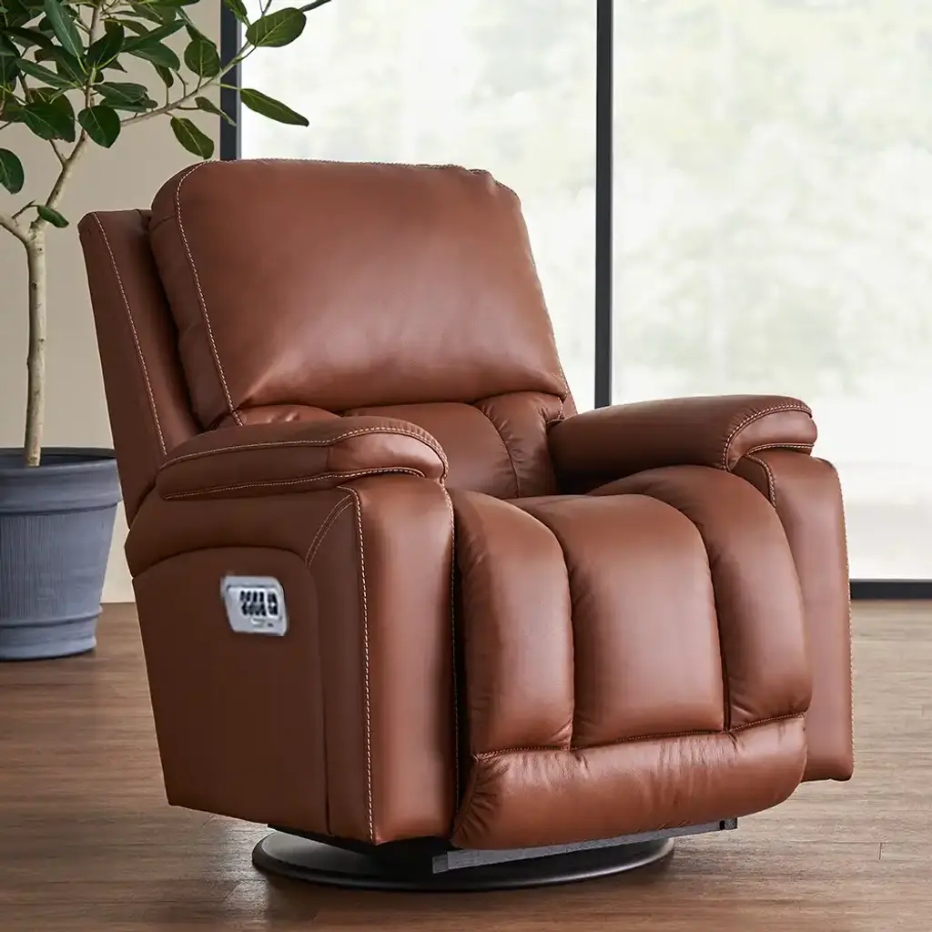 Exceptional comfort and exceptional detailing are the hallmarks of the Greyson Power Rocking Recliner with Headrest and Lumbar. Exquisitely designed, Greyson features pillow top arms and an extra-deep chaise seat and legrest that create a continuous zone of comfort in the reclining position. Simply use the head-to-toe power-adjustable control to recline and raise your feet independently for a wide range of relaxing positions. There’s even a built-in USB port to power your phone or tablet. When you’re not reclining, it’s a relaxing rocker with a smooth, graceful motion.