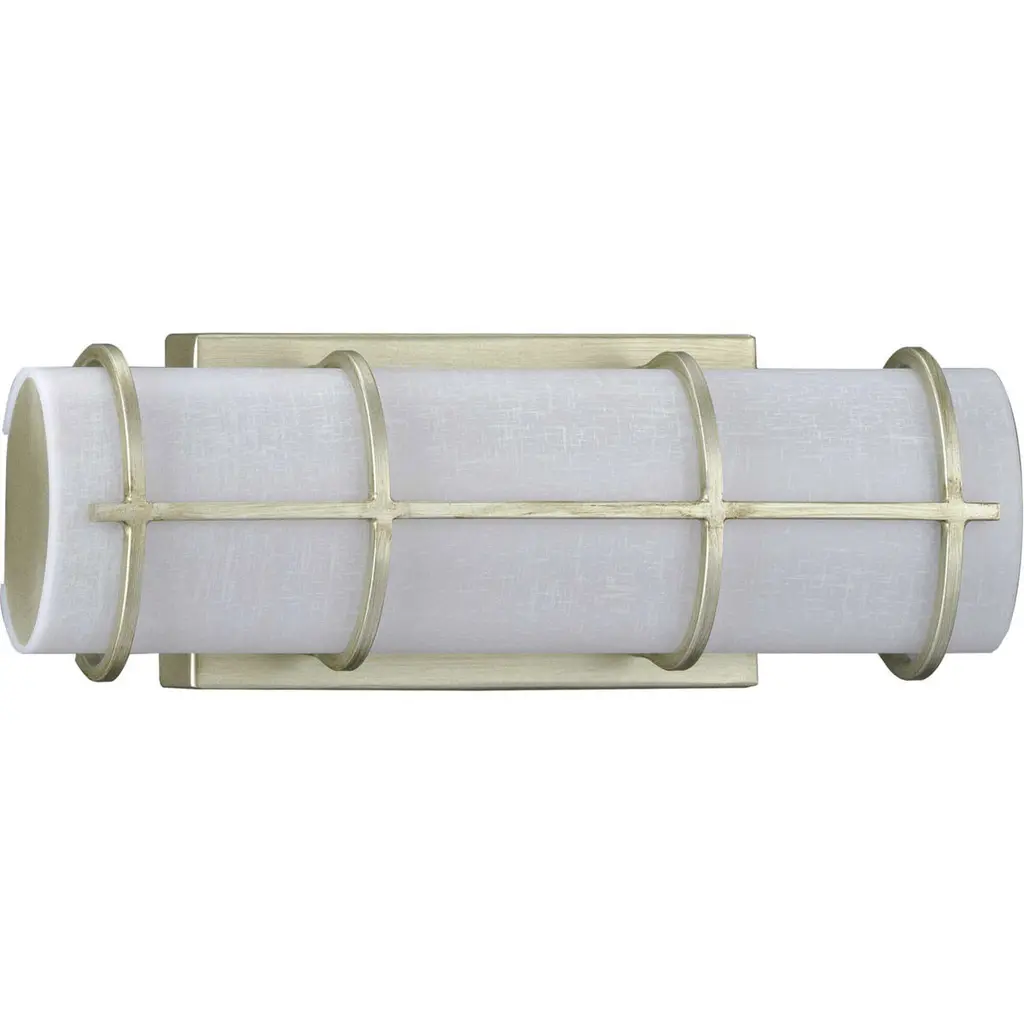Blend a dramatic look and soft illumination with the Grid LED Collection 14-Inch 1-Light Matte Black White Linen LED Modern Linear Bath Vanity Light. The geometric, open-cage frame is coated in a classic matte black finish. A light source glows from inside a cylindrical acrylic white etched linen diffuser for soft illumination.