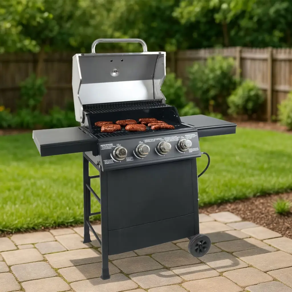 Turn every backyard barbecue into a gathering to remember with the Grill Boss 4-Burner Outdoor Propane Gas Grill. Designed to deliver serious cooking power, this grill is ideal for everything from family dinners to weekend parties with friends. With 4 burners generating 40,000 total BTUs of heat, you can fire up quick meals or slow-cook savory favorites with ease. The spacious 420 square inches of primary cooking area gives you plenty of room to grill multiple burgers, steaks, and vegetables all at once. Need to keep things warm while prepping the next batch? The 160 square inch warming rack lets you do just that, making multitasking easy. The porcelain enamel cast iron grates ensure your food cooks evenly and clean-up is simple. Setting up is quick with the push-and-turn ignition system, and when it’s time to move or store the grill, the 2 wheels make transport smooth and effortless. Durable side shelves offer convenient space for prepping ingredients, holding tools, or plating your next masterpiece. The stainless steel lid not only looks sleek but helps lock in heat for optimal cooking. Equipped with a built-in temperature gauge, you’ll get precise heat control every time you grill. Whether you're hosting a backyard get-together or enjoying a quiet dinner under the stars, the Grill Boss 4-Burner Gas Grill delivers performance, style, and flavor in one powerful package.