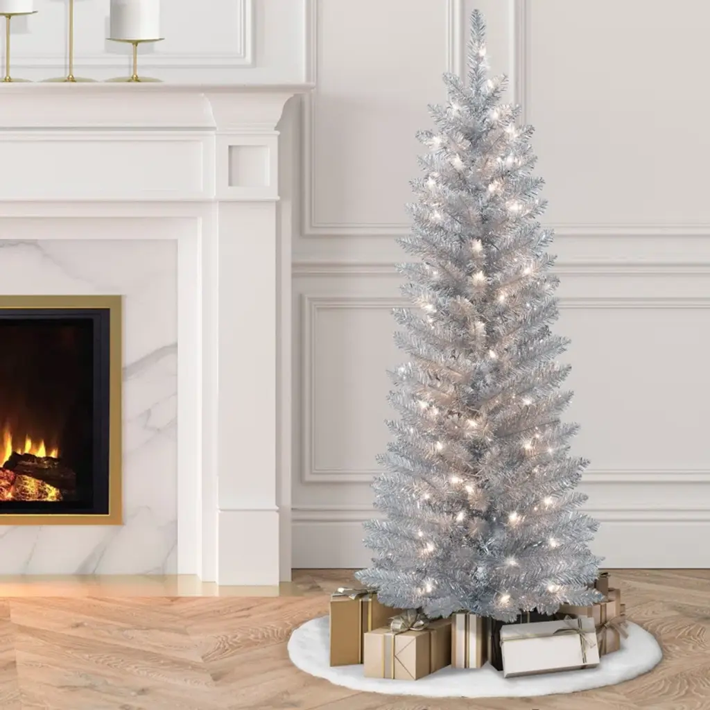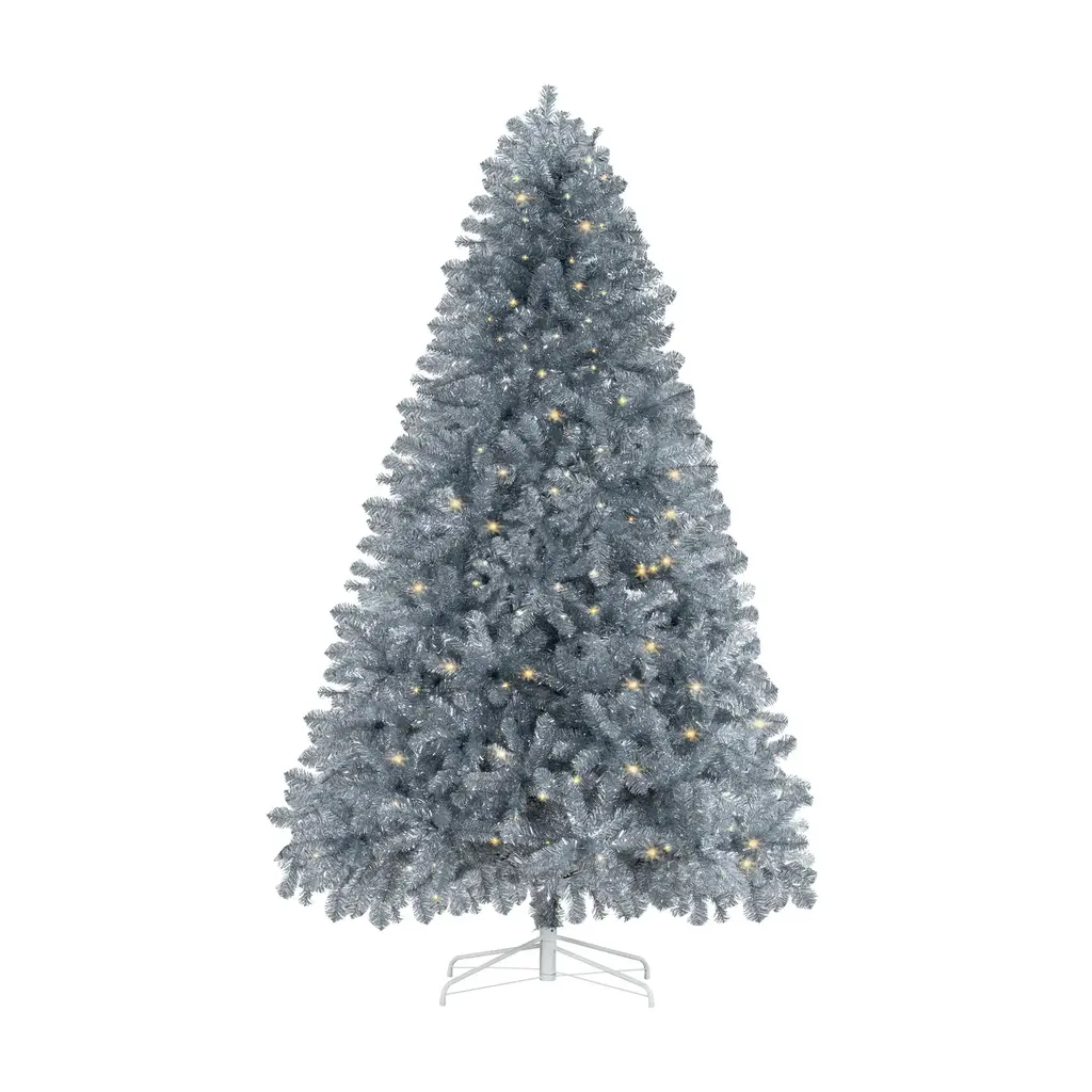 7 ft pre-lit silver tinsel artificial tree 316 tips 150 clear lights