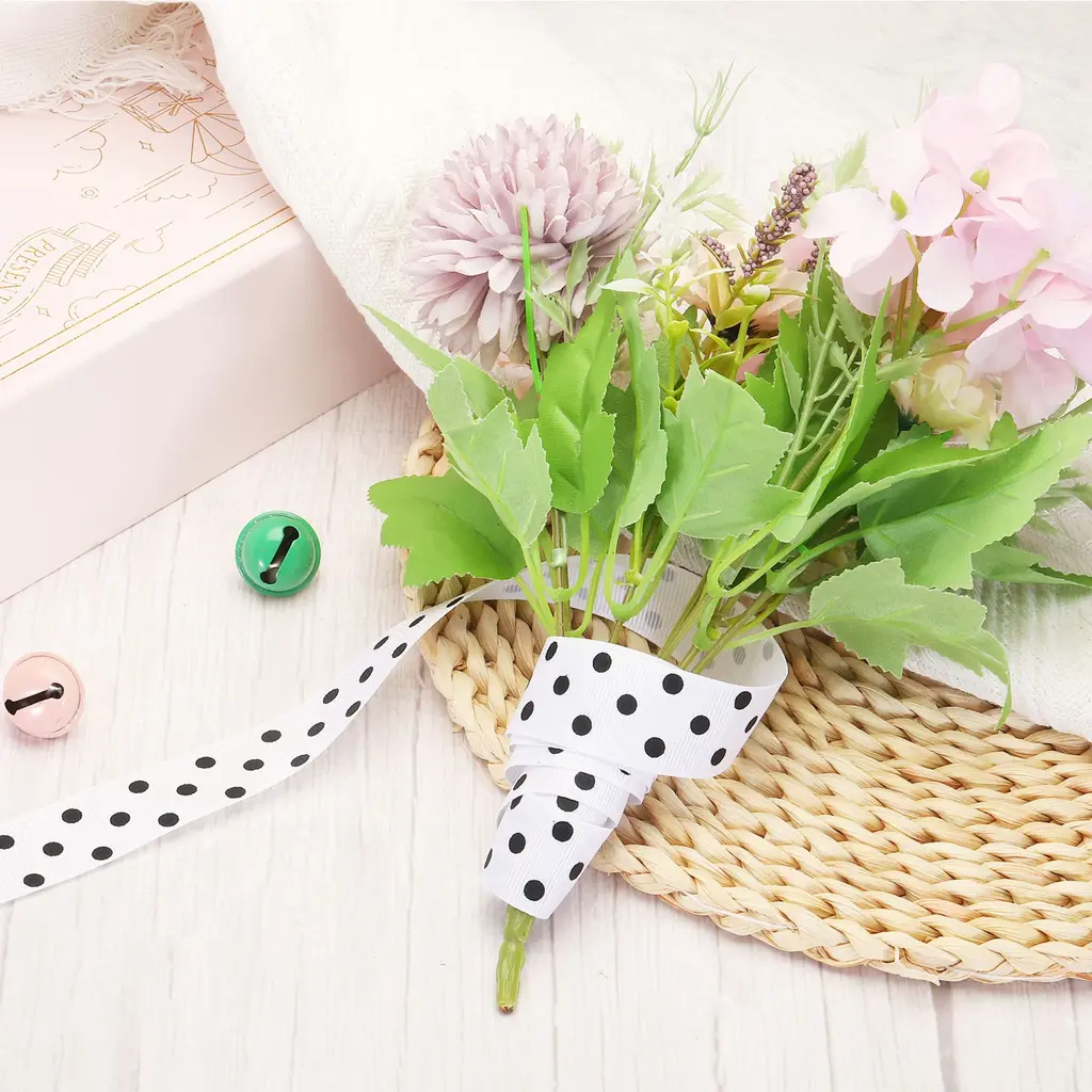 Grosgrain Ribbons 25 Yards 1 Inch W White Dots Ribbon Bow Decoration - Navy Blue