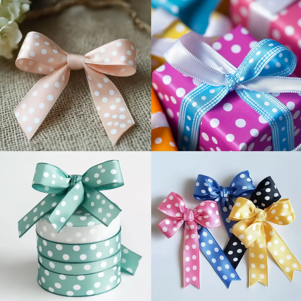 Grosgrain Ribbons With Dots Ribbon Bow Decoration - Black - 100 Yards 3/8 Inch