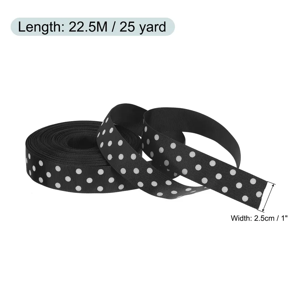 Grosgrain Ribbons With White Dots Ribbon Bow Decoration - Black - 25 Yardx0.4 Inch