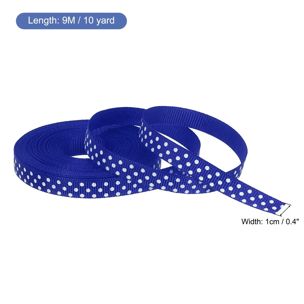 Grosgrain Ribbons With White Dots Ribbon Bow Decoration - Blue - 25 Yardx0.4 Inch