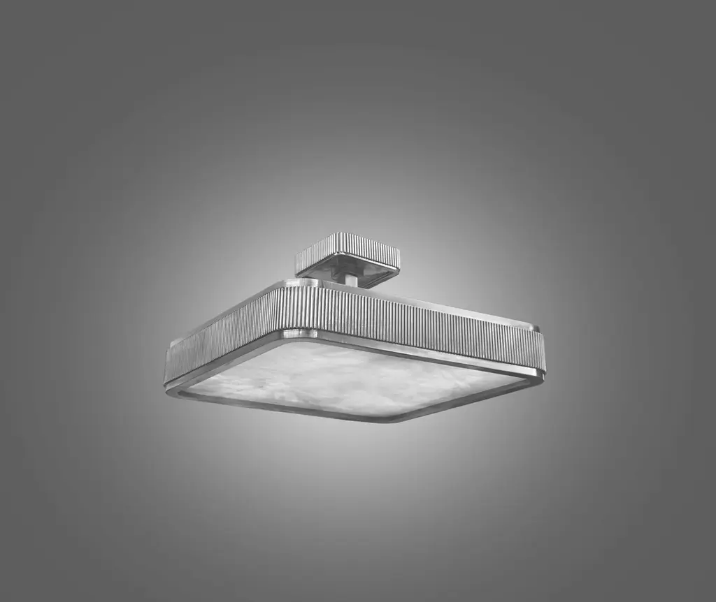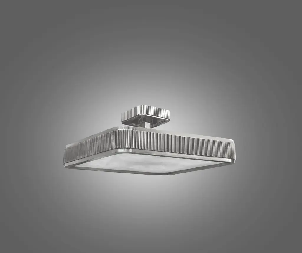Group of two elegant form nickel plating frame with rock crystal panel, BSO rock crystal semi flush mount. Created by Phoenix, NYC.Height can be adjustable.