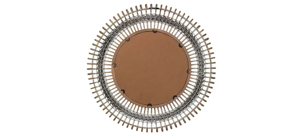The Grove Braided Mirror intertwines open work bamboo in two colors wrapped around a circular frame to feel light, yet substantial in design.
