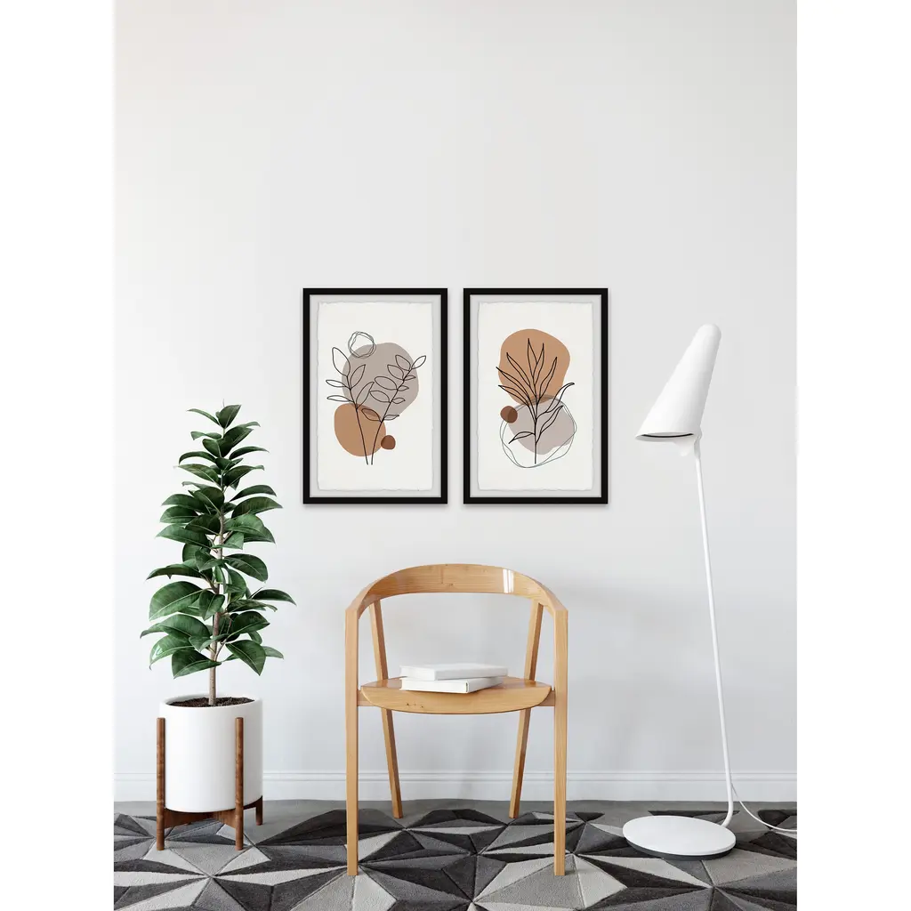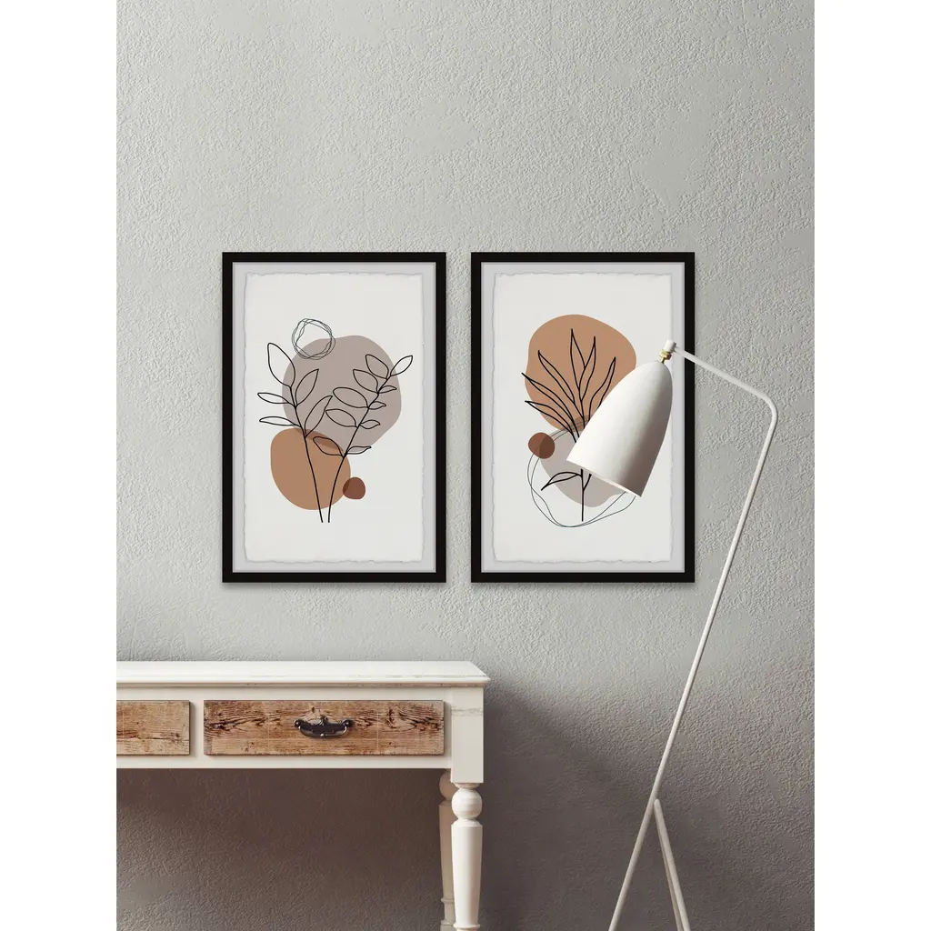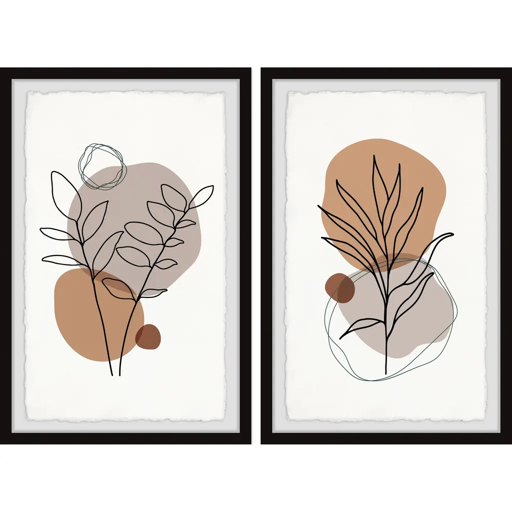 This drawing print duo is the perfect statement for any open wall in your home, featuring two drawn out botanical arrangements with abstract and geometrical elements. Proudly printed in the USA, this piece is printed on high quality archive paper and professionally hand-framed. With wall-mounting hooks included, this artful accent is ready to hang up as soon as it reaches your front door. • Top quality Giclee print on high resolution Archive Paper • Hand cut deckled edges • High quality durable non-warping frame • Finished under shatter resistant plexiglass • Arrives ready to hang • Includes a certificate of authenticity • Printed in the USA