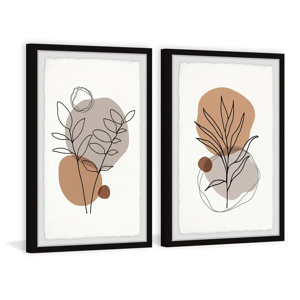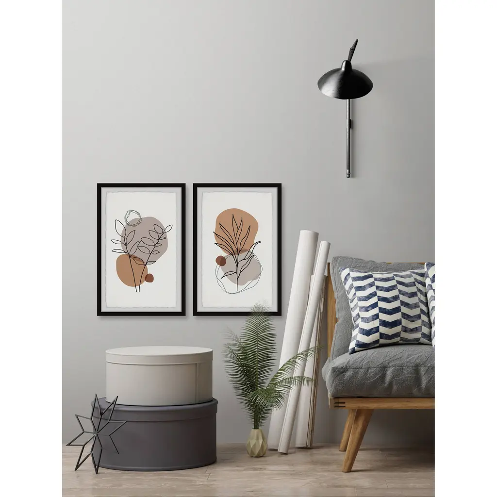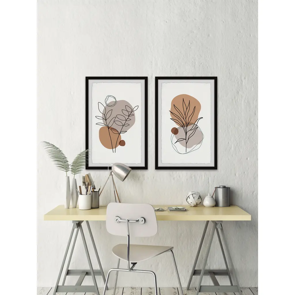 This drawing print duo is the perfect statement for any open wall in your home, featuring two drawn out botanical arrangements with abstract and geometrical elements. Proudly printed in the USA, this piece is printed on high quality archive paper and professionally hand-framed. With wall-mounting hooks included, this artful accent is ready to hang up as soon as it reaches your front door. • Top quality Giclee print on high resolution Archive Paper • Hand cut deckled edges • High quality durable non-warping frame • Finished under shatter resistant plexiglass • Arrives ready to hang • Includes a certificate of authenticity • Printed in the USA