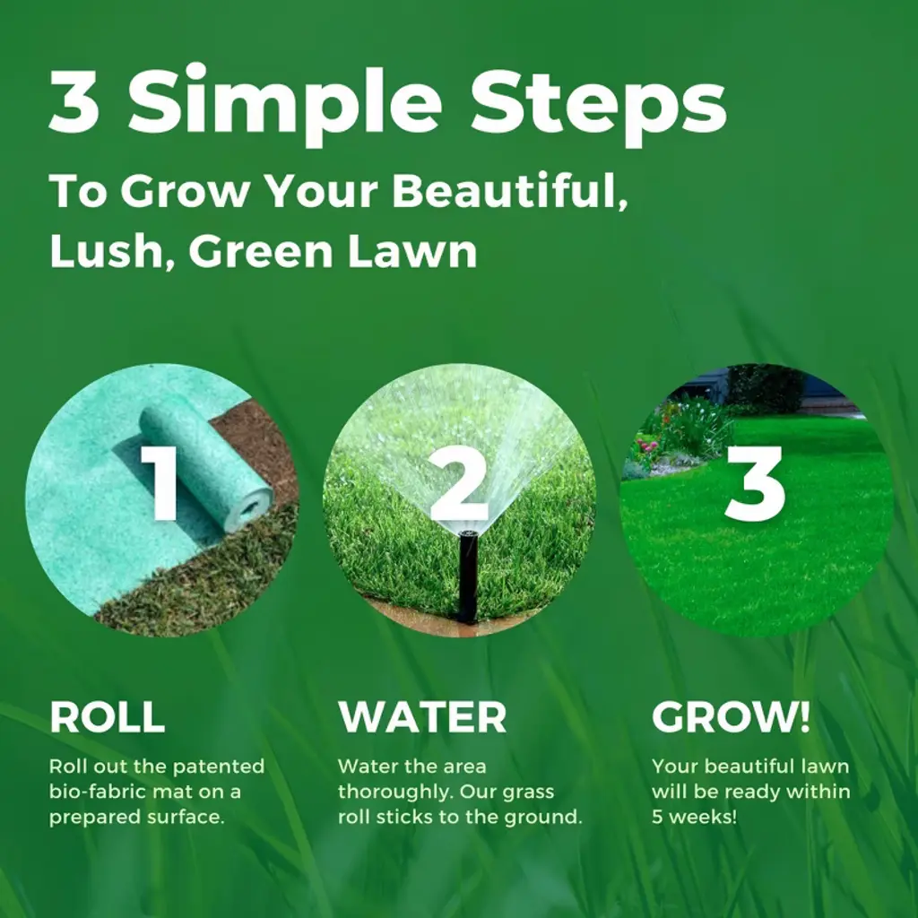 GrowTrax provides an easier, cheaper, better way to grow grass. The grass seed and fertilizer are sandwiched between 2 bio-fabric layers. It literally sticks to the ground when moistened, no staking required, providing excellent seed to soil contact. GrowTrax holds 6X its weight in water. For fast germination and uniform growth, simply roll, water and watch it grow.