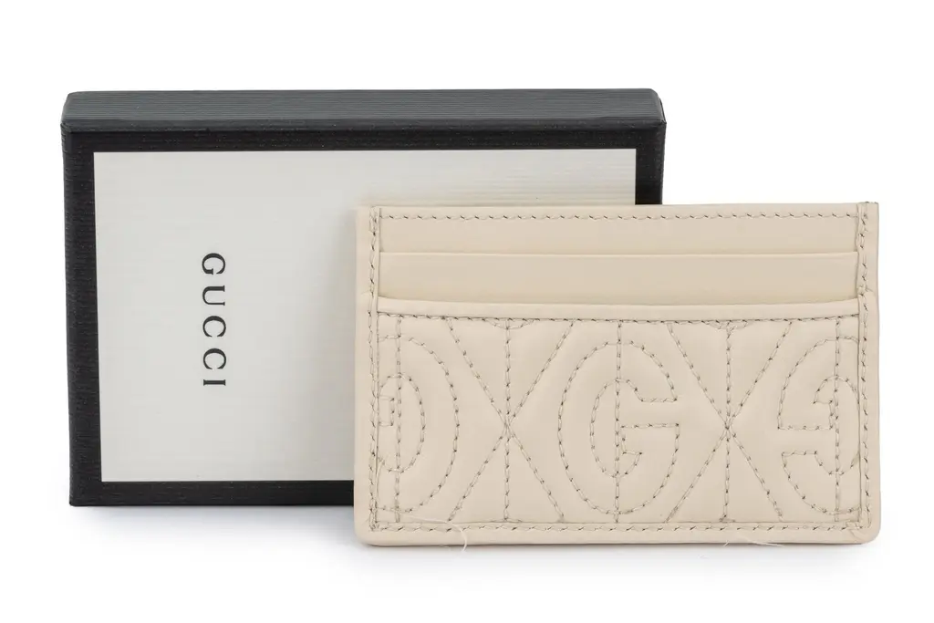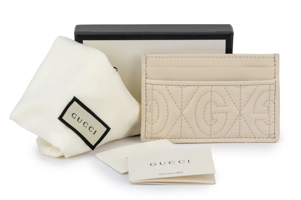 Gucci brand new cream embossed logo credit card case. Comes with booklets, original dustcover and box.